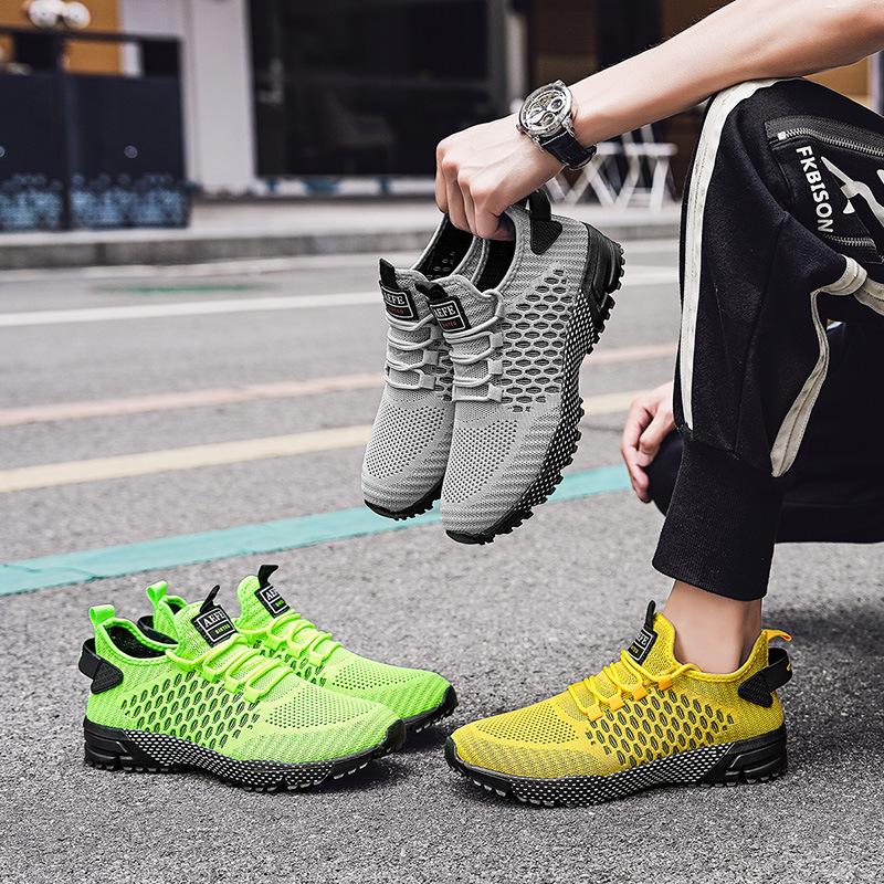 Подошва больших размеров, стильные и легкие кроссовки для бега, мужские летающие тканые полые кроссовки, модная мужская обувь