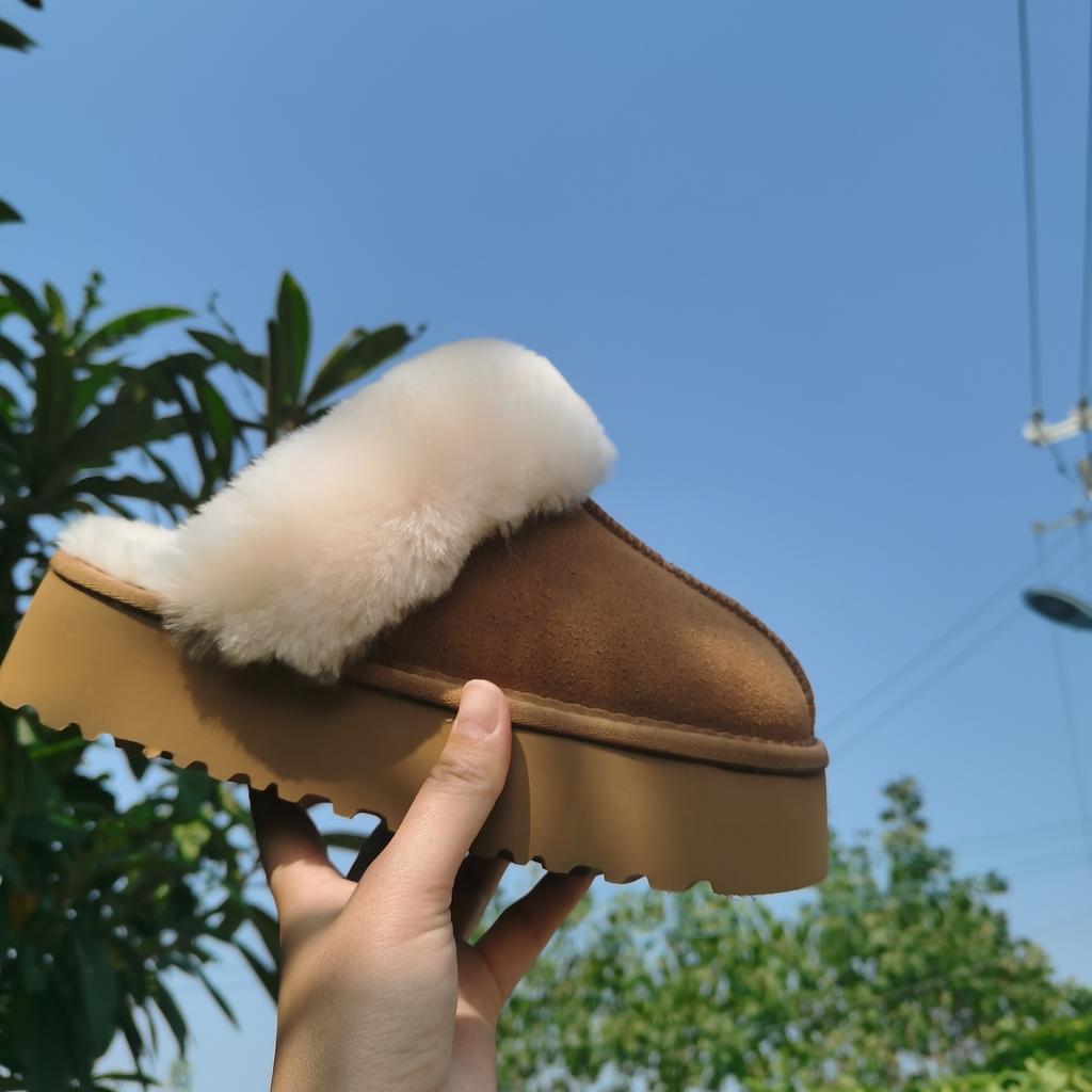 Новые тапочки на платформе, шерстяные домашние тапочки с трубчатым носком, зимние тапочки из коровьей кожи и бархата, утолщенные тапочки для пола, верхняя одежда