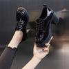 Британские кожаные туфли женские новые осенние модные универсальные туфли-лодочки на толстом каблуке из лакированной кожи водонепроницаемые туфли на платформе высокие каблуки абрикосового цвета