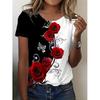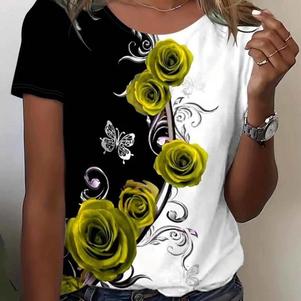 Элегантная и стильная женская футболка с красочными розами и круглым вырезом горловины, универсальный и освежающий топ в стиле Y2K для лета