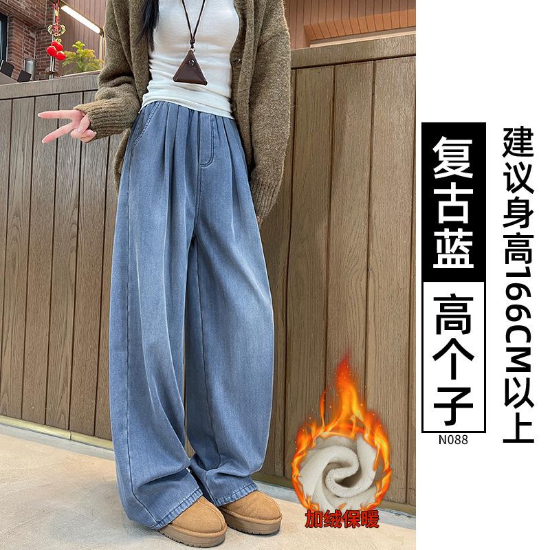 Флисовые джинсы детские новые осенне-зимние с маленькой эластичной талией, прямые, свободные, драпирующиеся, узкие, широкие брюки