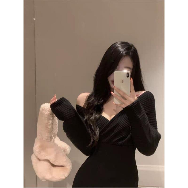 Шикарное чувство дизайна Нишевая юбка Темперамент Муза Поклонник Высокое чувство Облегающее Сексуальное Вязаное платье Женское Осенне-зимнее