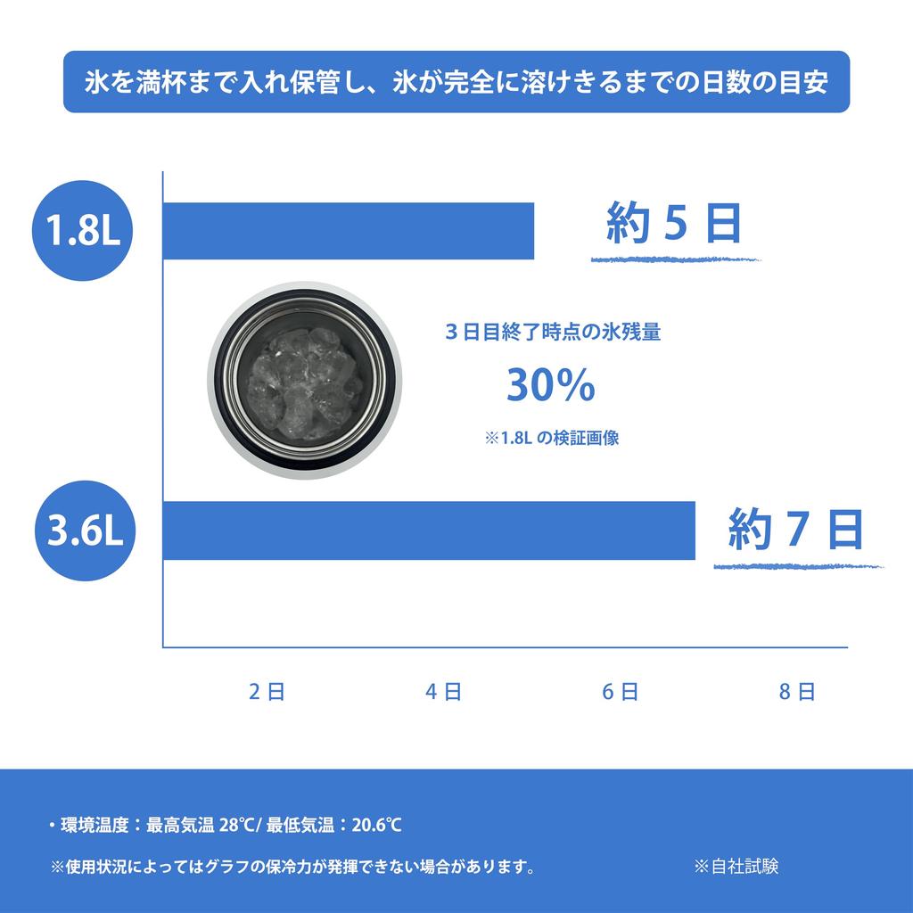 LALPHA Кувшин для льда, Вакуумный термос для льда, Сохраняет лед холодным и горячим, Нержавеющая сталь, Идеально подходит для кемпинга и активного отдыха (1.8 л, Черный)