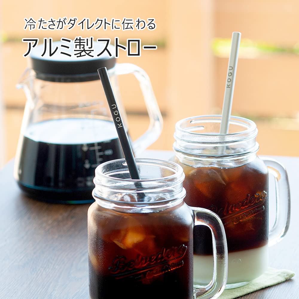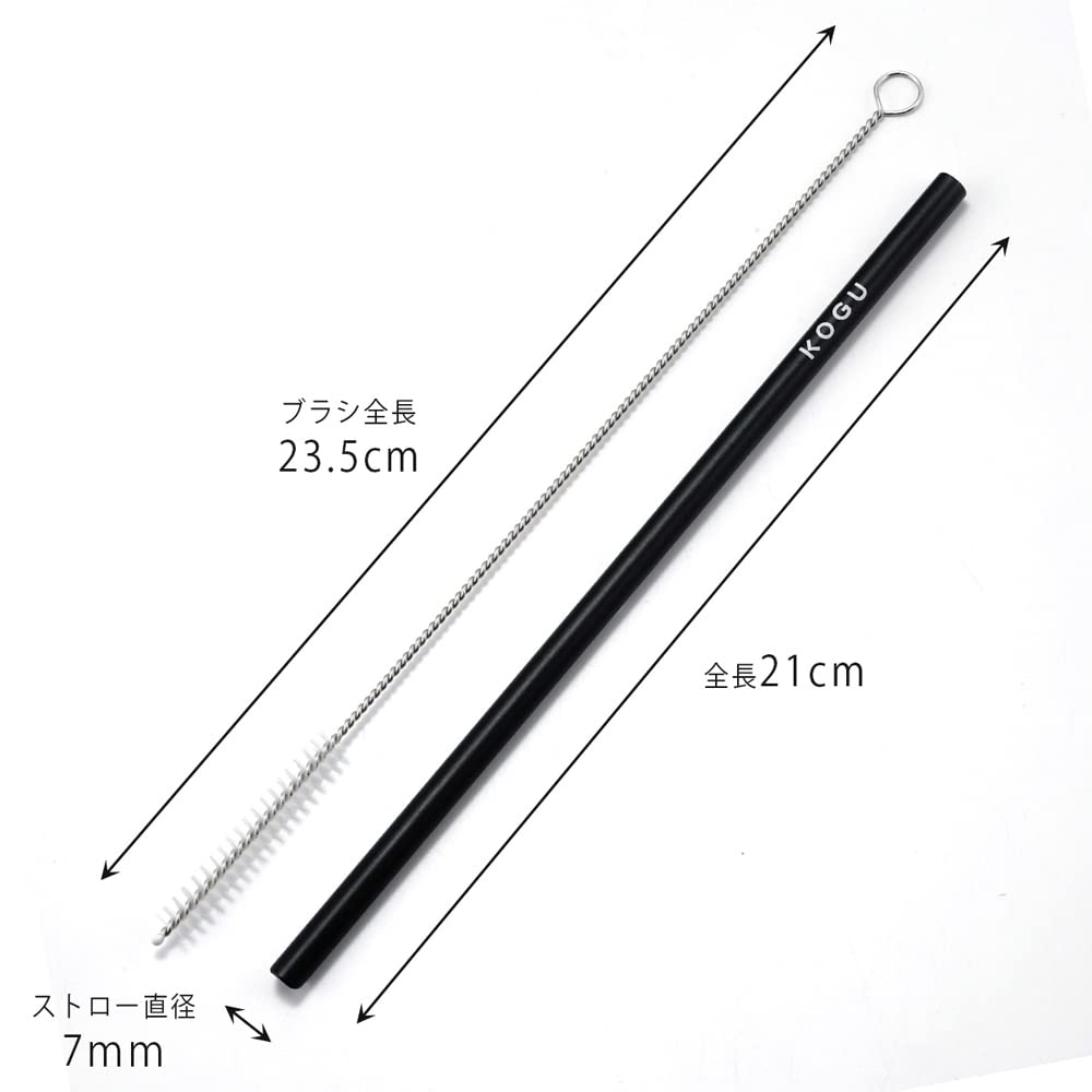 KOGU Coffee Kogu Соломинка, Алюминий, 7 мм [Сделано в Японии], Многоразовая и Моющаяся, со Щеткой, Экологичная, для Холодных Напитков, Черная, Цубаме-Сандзё, 43941,