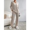 Осенняя Мода Повседневные Брюки Прямого Кроя с Свободным V-образным Вырезом и Трикотажные Женские Комплекты-двойки с Рубчиком