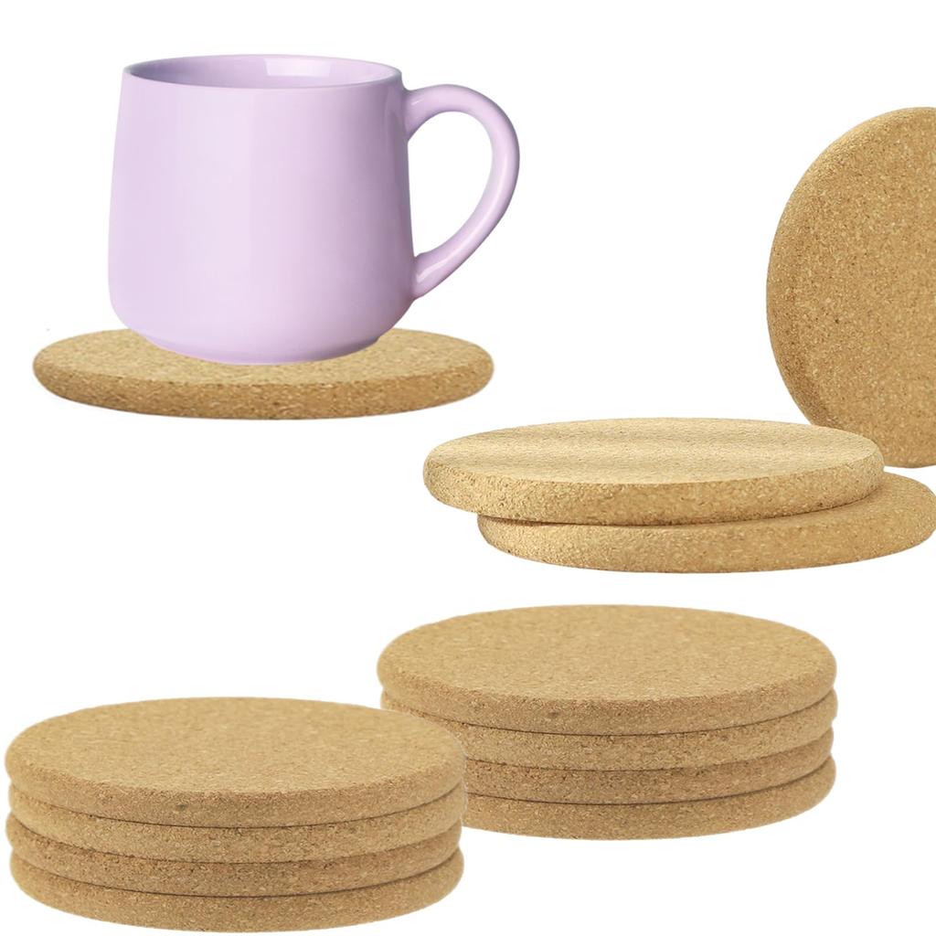 Samcos Cork Coasters, 12 Round Plain Coasters, Reusable Cork Circles, Heat-Resistant, Water-Absorbent, High-Density, Suitable for Glasses and Mugs,