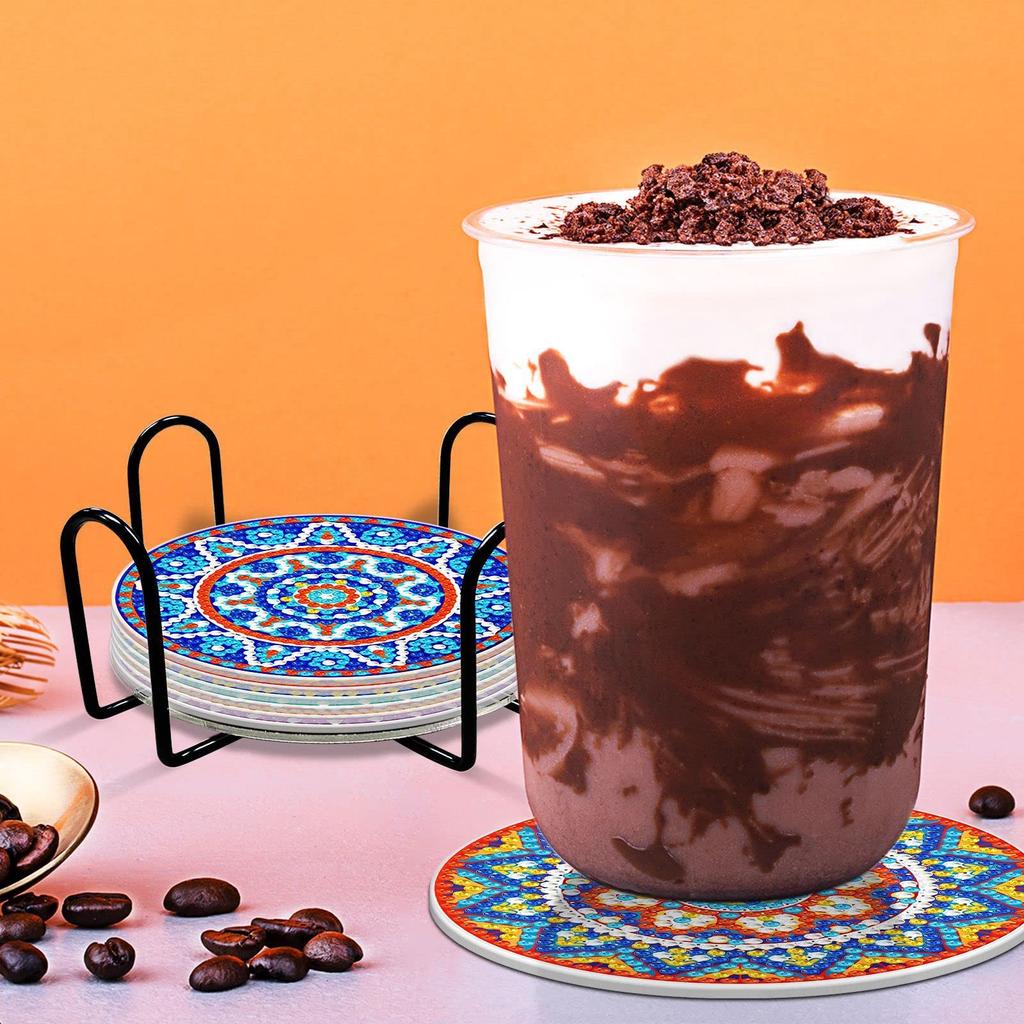 KAKISO Набор из 8 подстаканников для 5D-алмазной вышивки DIY с держателем для поделок, Алмазное искусство, Ручная работа, Подстаканники с алмазной вышивкой, Подводный синий океан