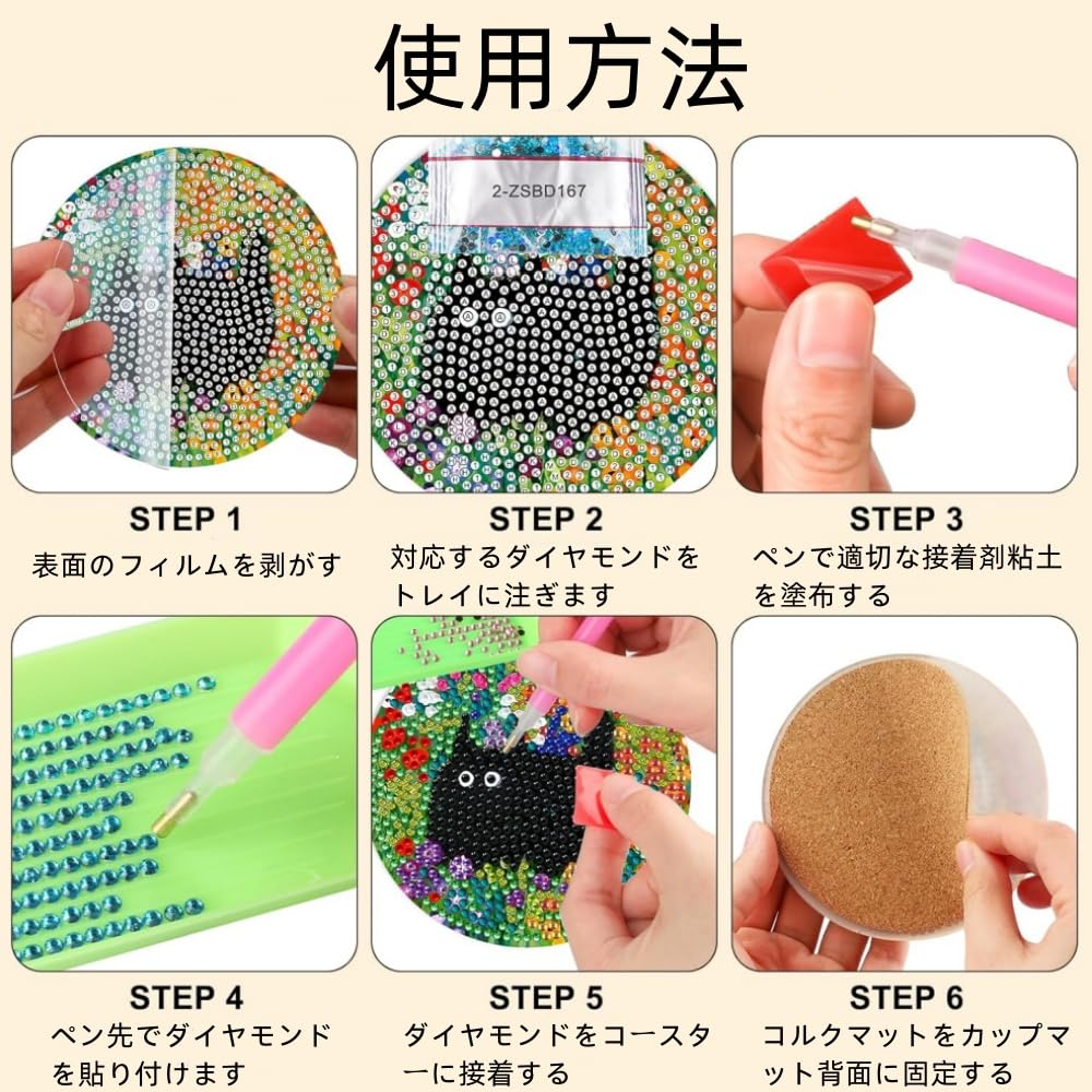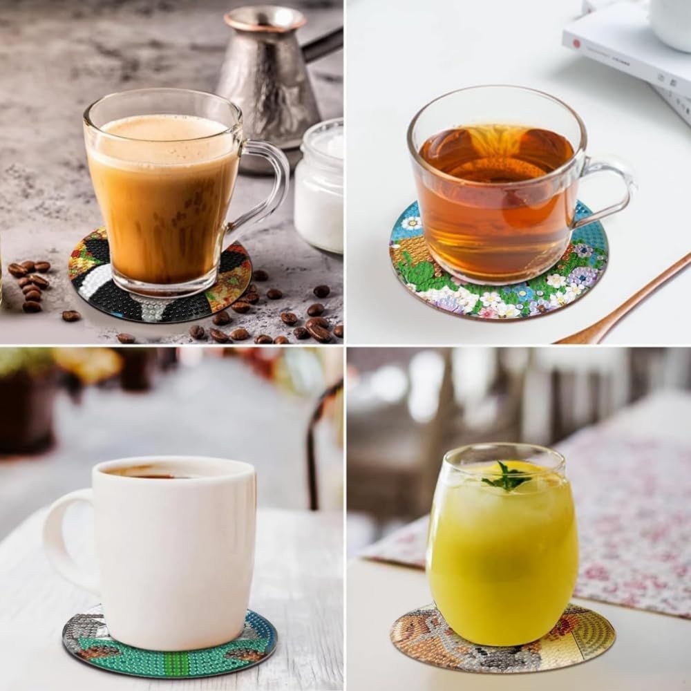 Набор для алмазной мозаики - подставка (Набор из 6 предметов) - Набор для алмазной вышивки «Сделай сам» для начинающих, милые мультяшные мозаичные украшения с котиками и декоративный набор «Сделай сам» с