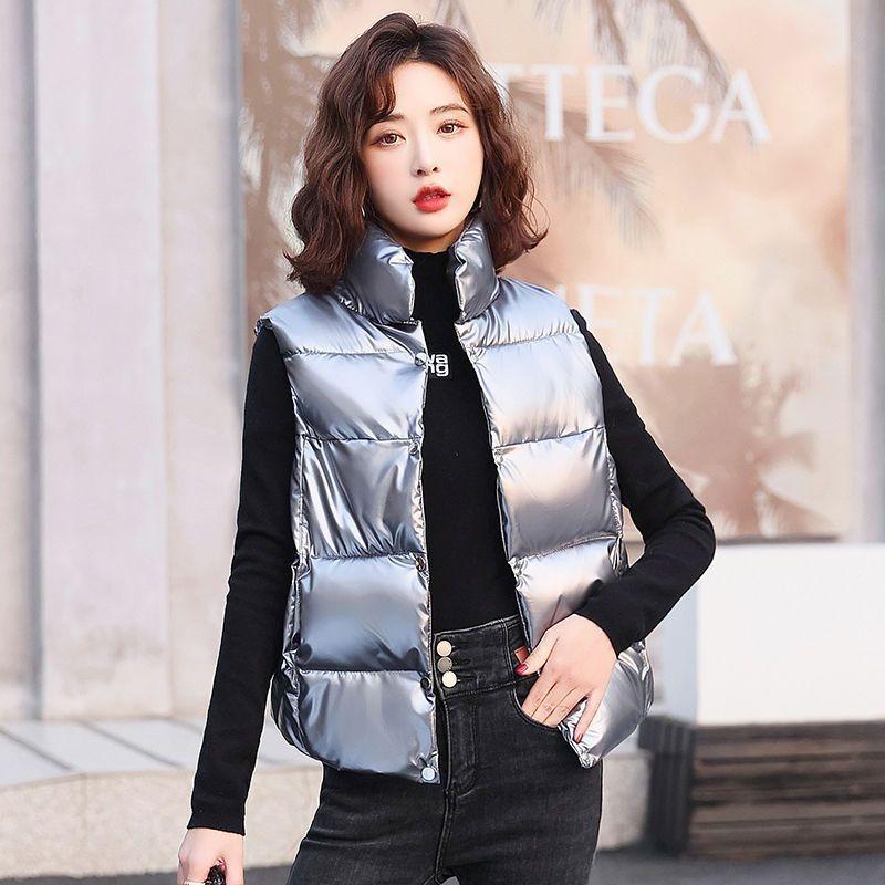 Глянцевый жилет без рукавов женский пуховый хлопковый осенне-зимний короткий модный свободный жилет хлопковая куртка жилет жилет куртка