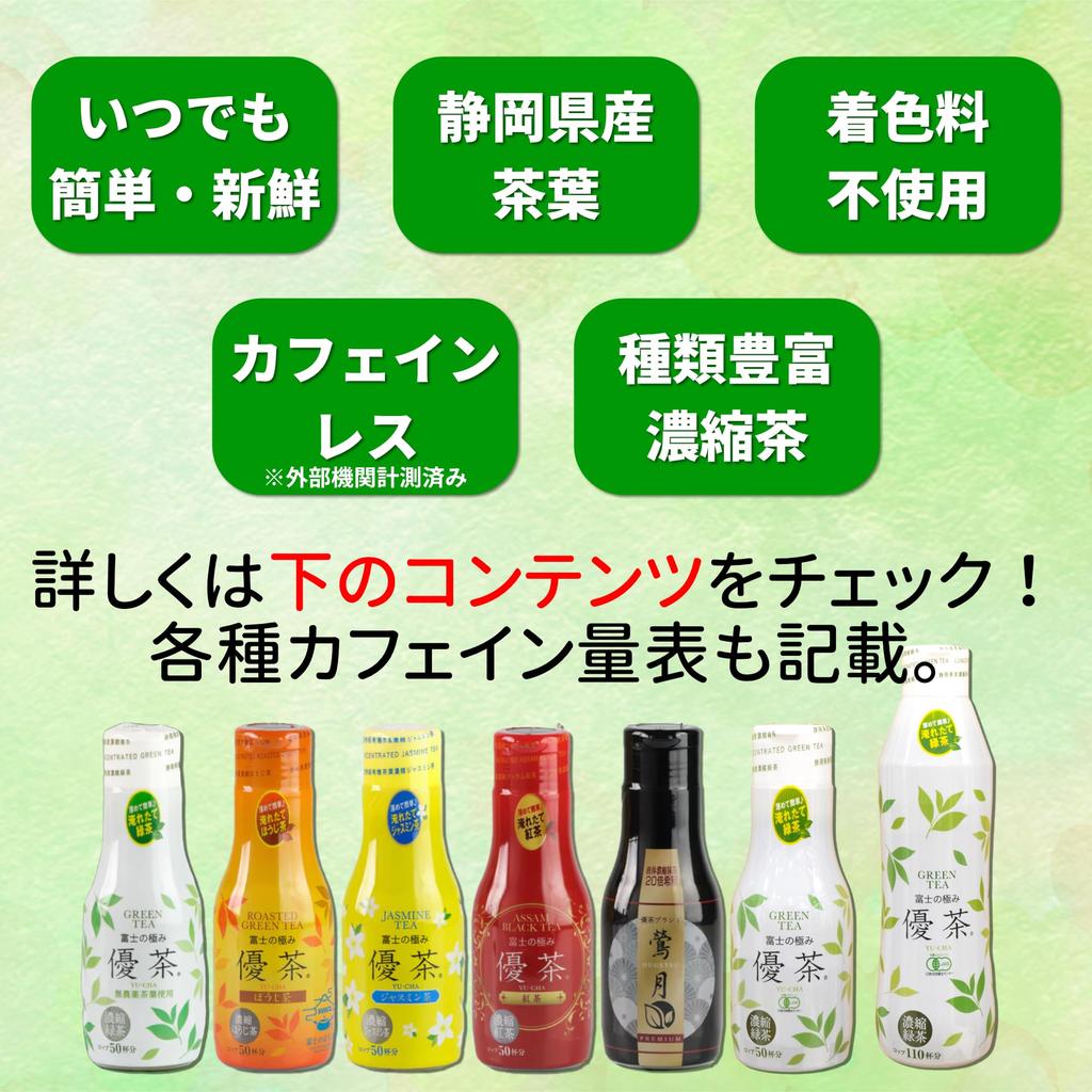 ⑧ Детали продукта: [Серия] Fuji no Kiwami Yucha, [Размер] H приблизительно. 15 см x Ш примерно. 5см, [Ингредиенты] Зеленый чай, Витамин С, [Объем] 200мл, [Страна происхождения] Префектура Сидзуока, [Тип кофеина] Без кофеина, [Подарочная коробка] Нет