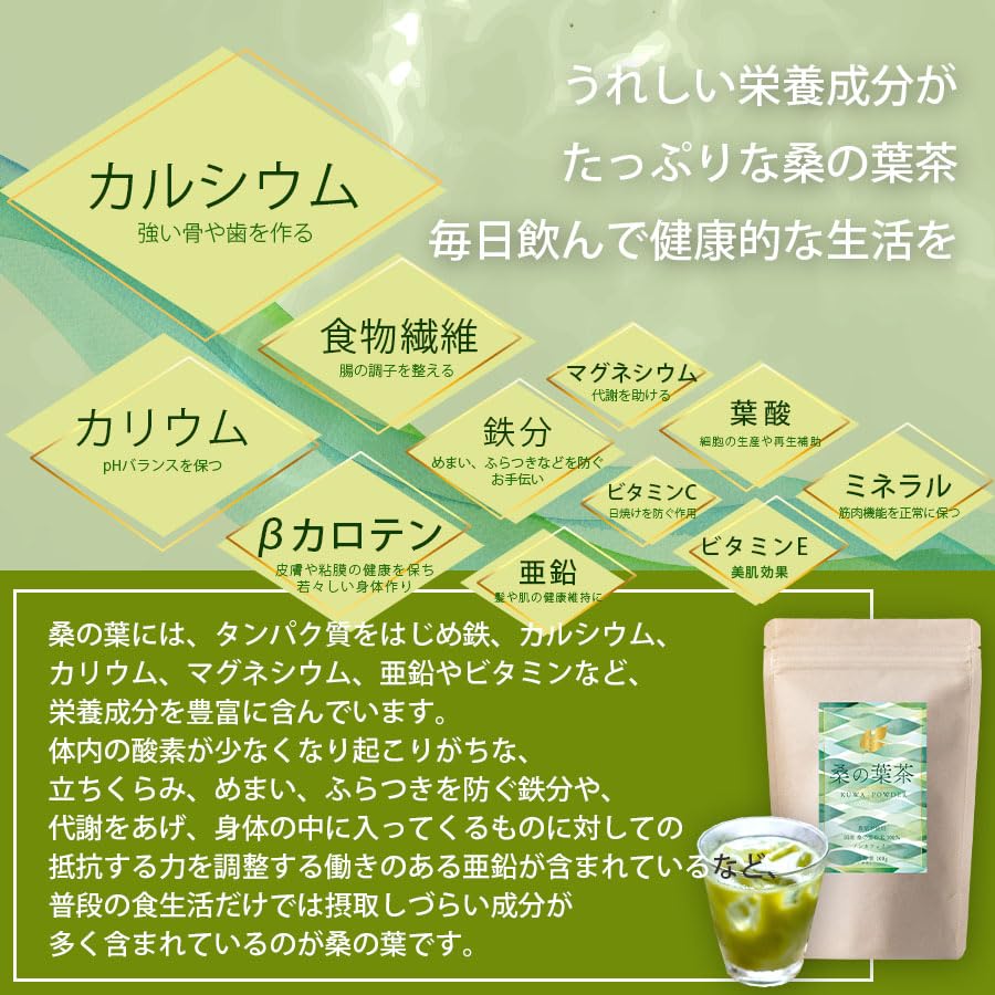[Сделано в Кюсю, Без химических удобрений, Без остатков пестицидов] Вкусный, мягкий порошок листьев шелковицы и чай из шелковицы 100 г порошка листьев шелковицы,