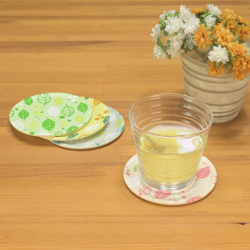 Подставка под кружку TATSU-CRAFT Yuzen Washi, Дизайн 'Зимний лист', Серый, Можно мыть в посудомоечной машине, Стильный пластик, Японский современный дизайн, Юдзен, Ваcи,