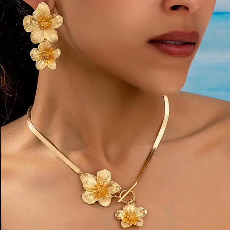 Элегантный набор из ожерелья с подвеской в виде цветка из сплава и серег, женственный, с атмосферой, с высоким чувством стиля, универсальный