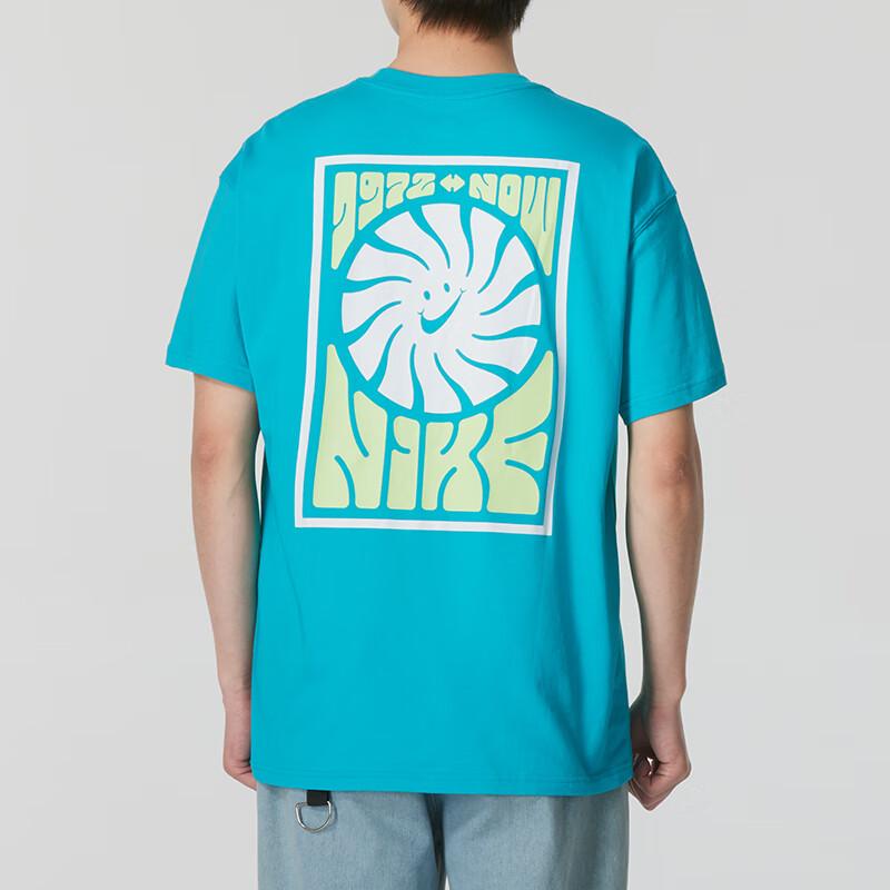 Nike Футболка мужская с принтом, тренировочная, модная, повседневная, спортивная, удобная, свободного кроя, с круглым вырезом и коротким рукавом, топ, павлиново-синий FV3721345