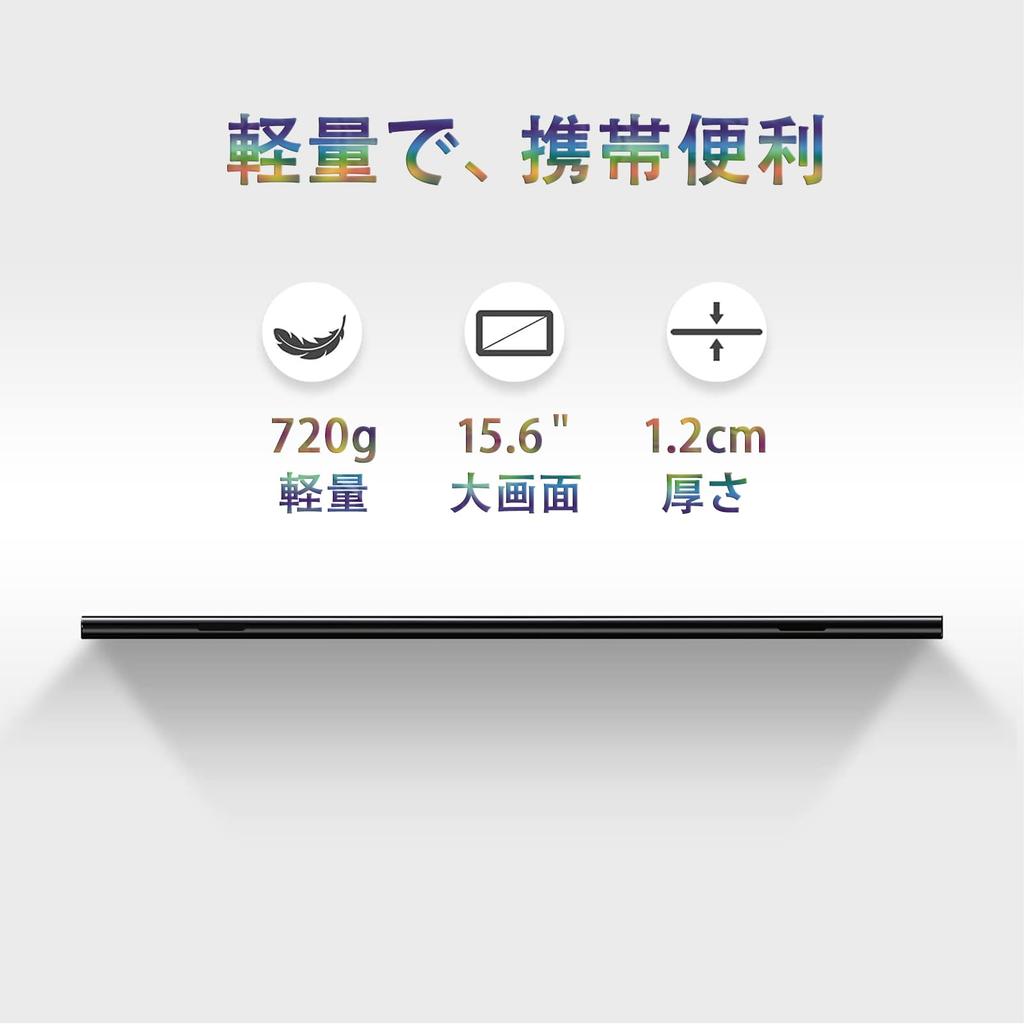 [Large 15.6-inch Screen] This 15.6-inch mobile monitor features a high-quality IPS LCD panel and supports full HD resolution. It expands your workspace and allows you to display multiple apps and windows simultaneously. It also works well as a gaming monitor, allowing you to enjoy immersive gaming experiences. Its blue light filtering and wide viewing angle provide stable image quality while protecting your eyes.