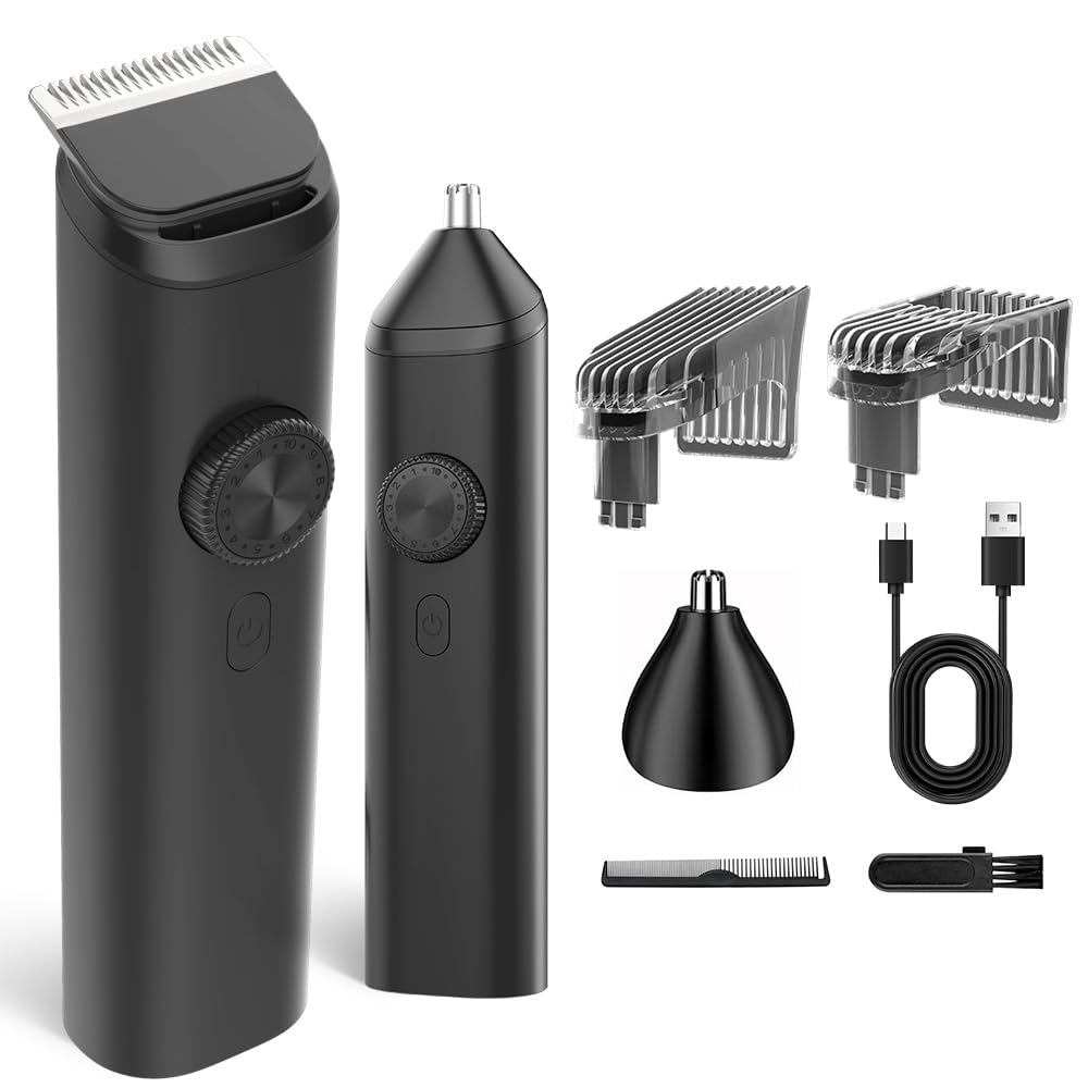 [Регулируемая высота стрижки, Триммер для носа, Простота использования] В комплект входят два типа направляющих гребней. После установки насадки вы можете регулировать высоту стрижки в 20 шагов от 0,5 мм до 40 мм с шагом 0,5 мм, вращая диск, что позволяет подобрать различные прически.. Этот цельный триммер для бороды позволяет точно подстричь контуры и линии вашей бороды, а также побрить бакенбарды, затылок и уши для создания аккуратной стрижки.. Прикрепив входящую в комплект насадку для стрижки волос в носу, устройство можно превратить в триммер для носа всего за секунду.. Этот мужской триммер идеально подходит для подстригания волос в ушах и носу, а также для ухода за бородой и бровями.. Просто нажмите и удерживайте кнопку питания в течение двух секунд, чтобы начать стрижку.. Нажмите один раз во время работы, чтобы поставить на паузу и перезапустить, что облегчает управление как для детей, так и для взрослых.