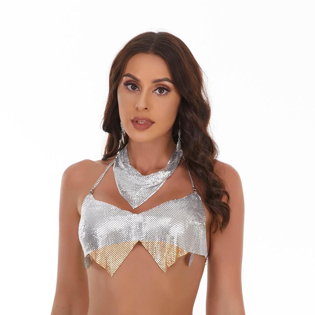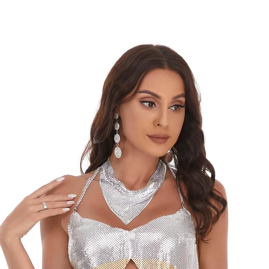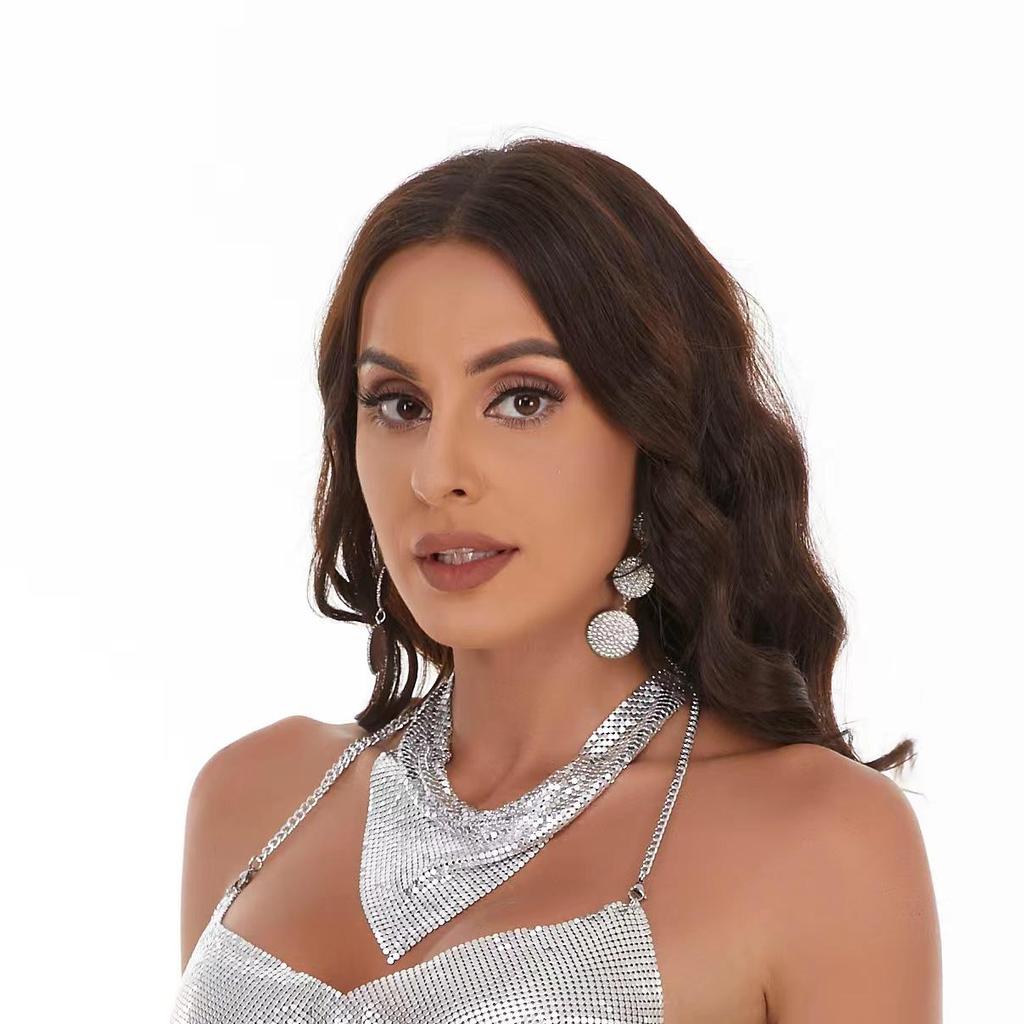 Европейский и американский шелковый треугольный шарф-ожерелье с пайетками: Женский преувеличенный металлический чокер на ключицу