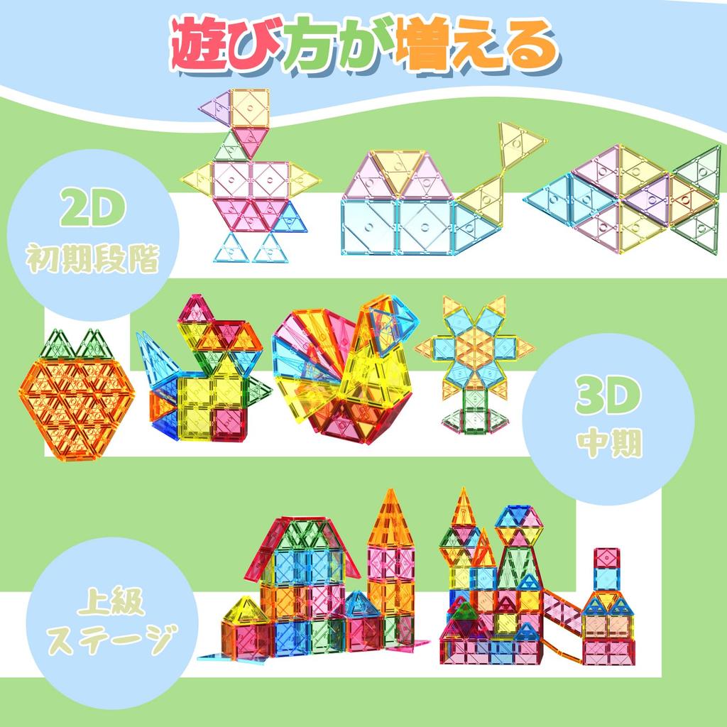 [Содержимое набора] Этот набор из 56 магнитных блоков включает: 28 квадратов, 18 треугольников, 8 длинных треугольников, 1 японская инструкция и 1 карман для хранения, что позволяет создавать разнообразные конструкции. Эти прозрачные магнитные блоки отличаются красивыми полупрозрачными цветами. Они бывают семи цветов: оранжевый, розовый, красный, желтый, зеленый, синий и фиолетовый. Семь цветов распределены равномерно.
