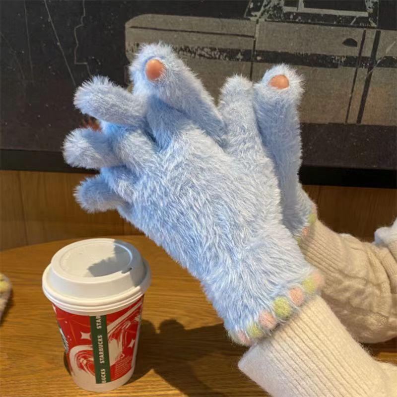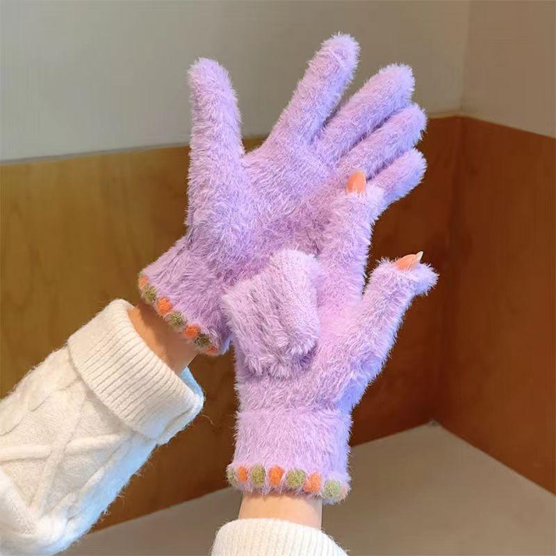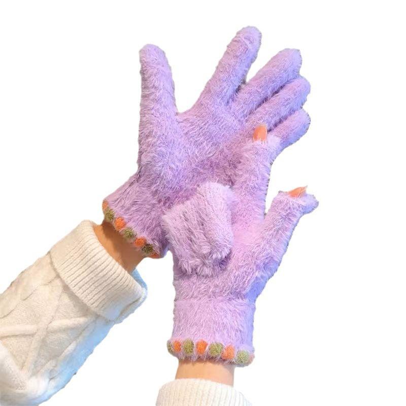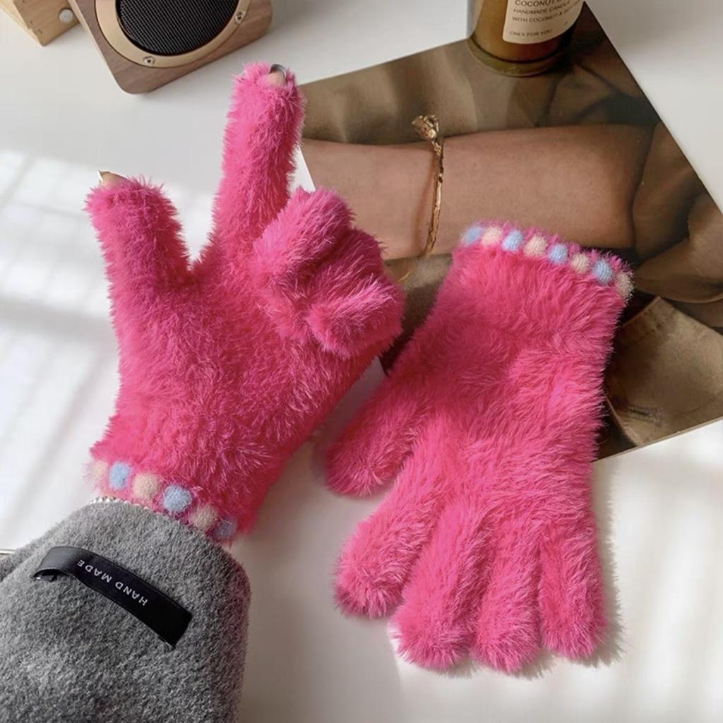 Милые плюшевые перчатки-варежки в виде желейных бобов, перчатки без пальцев для сенсорного экрана, студенческие велосипедные перчатки, зимние бархатные утолщенные теплые перчатки