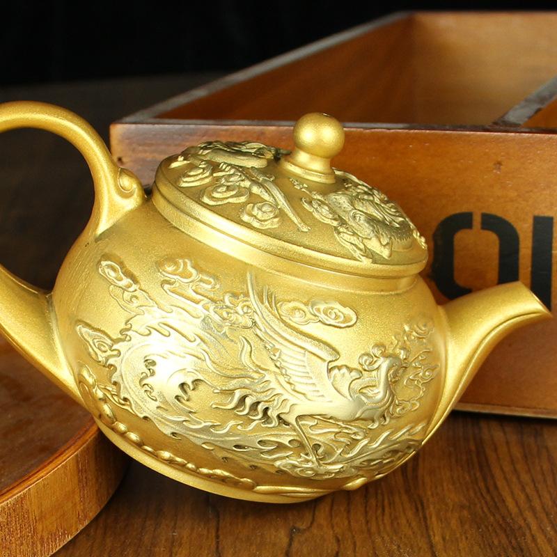 Тан Тэн латунный дракон и феникс чайник чайная чашка полный набор офисный чайный сервиз чистая медь медный металлический ремесленный орнамент
