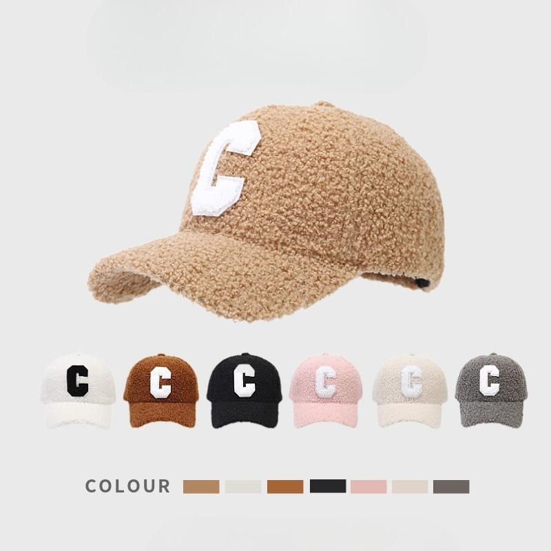 Новая осенне-зимняя бейсболка из овечьего бархата для женщин, утолщенная и теплая кепка с козырьком для мужчин, в корейском стиле, с буквой C, повседневная, подходящая ко всему