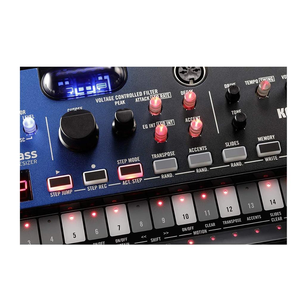 KORG volca nubass synthesizer bass machine with Nutube vacuum tube circuitry, a 16-step sequencer, built-in speaker, and headphone compatibility.