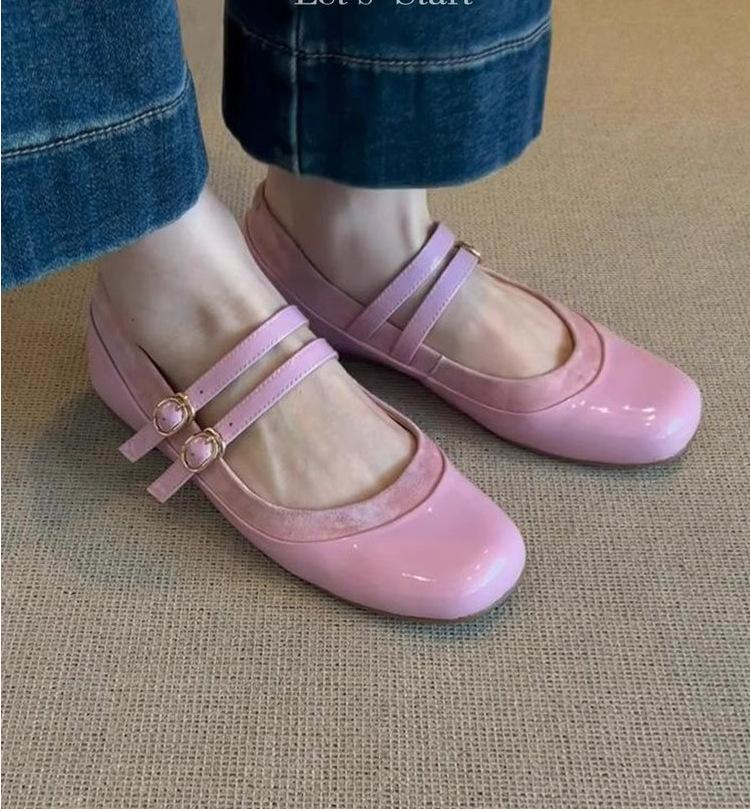 Версия из мягкой кожи~ Мягкая кожа на плоской подошве, французский темперамент, тупой носок, ремешок с пряжкой, туфли Мэри Джейн, женские ретро туфли-балетки с мелким вырезом