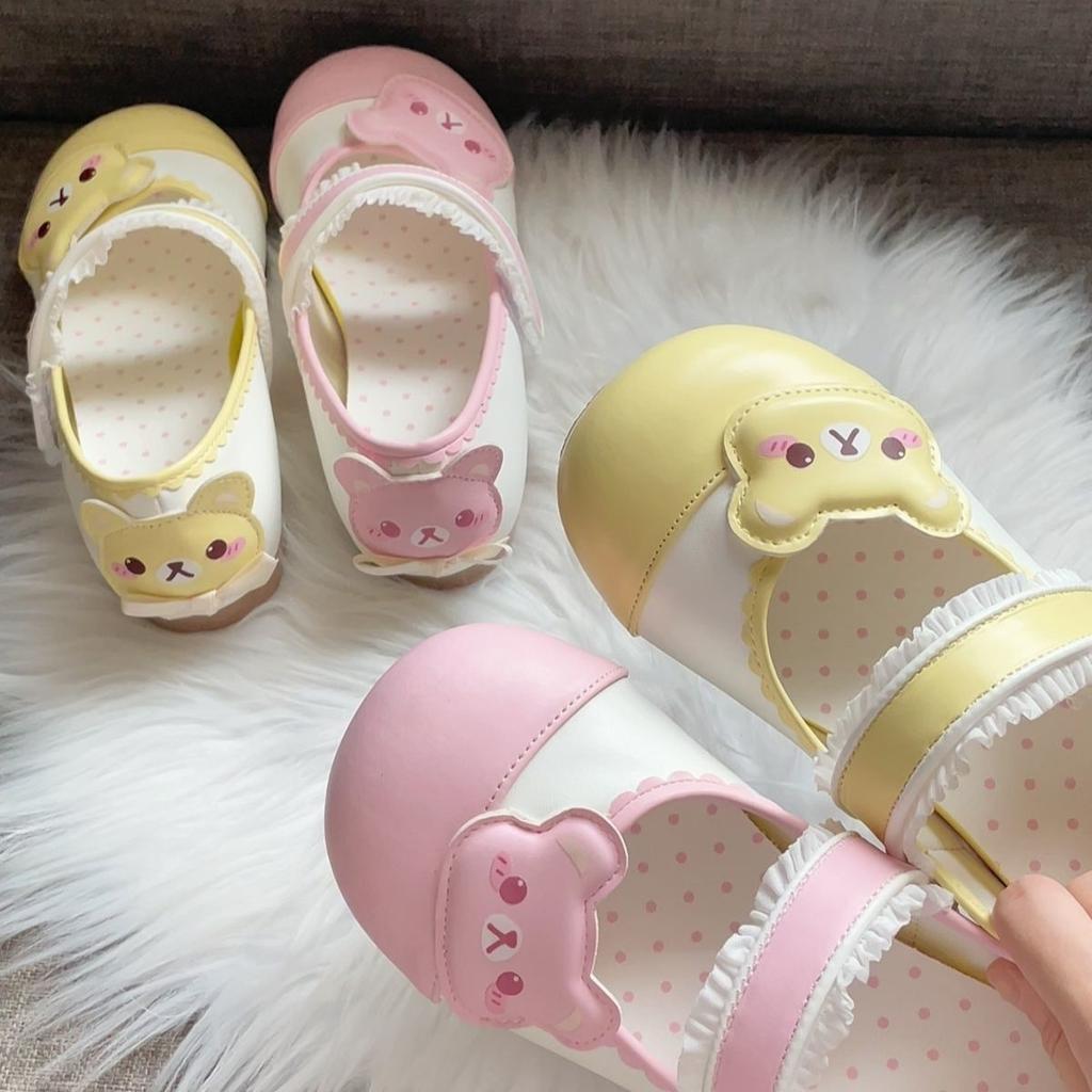Например, Лолита комнатные маленькие кожаные туфли милые мультяшные на липучке круглый носок мягкая подошва туфли принцессы