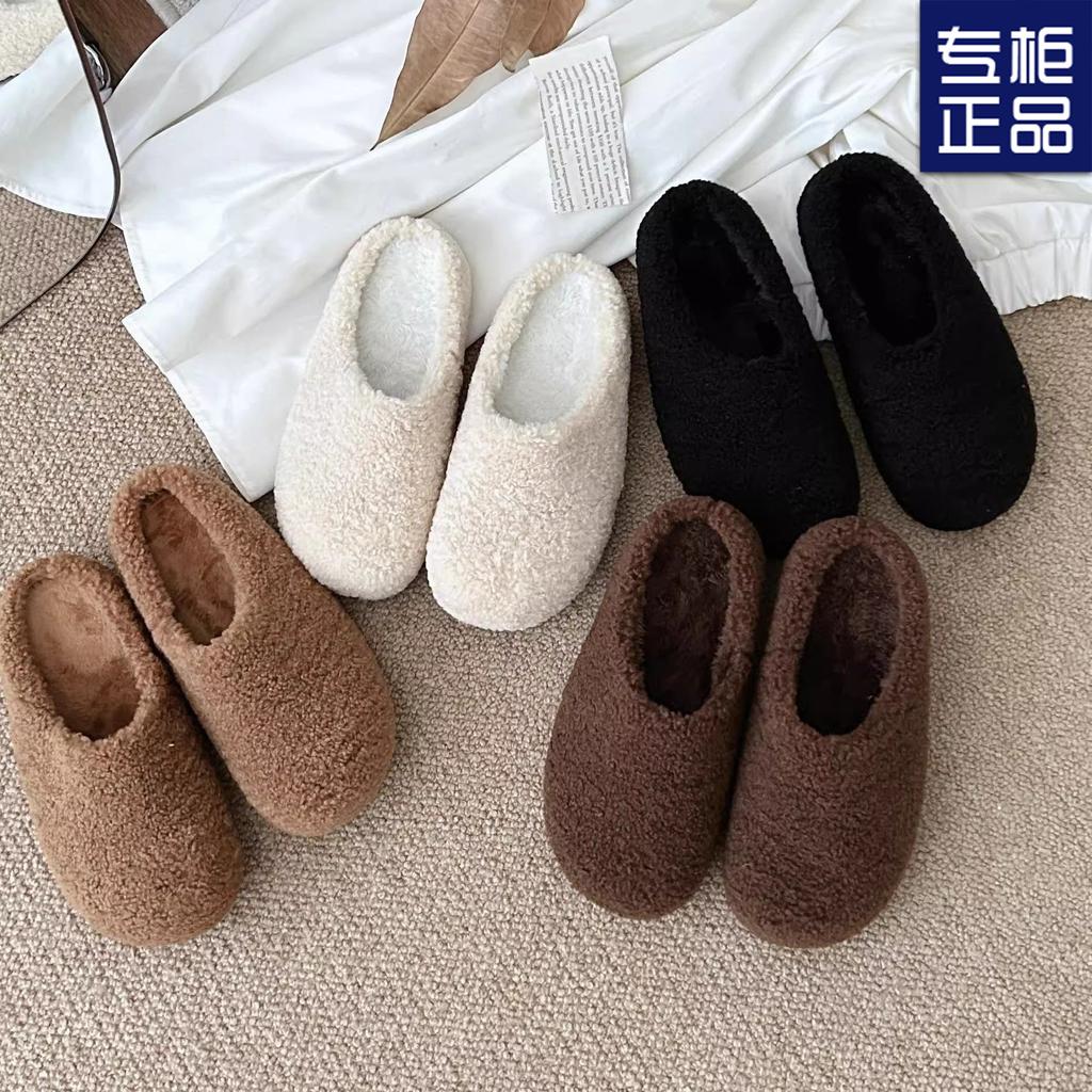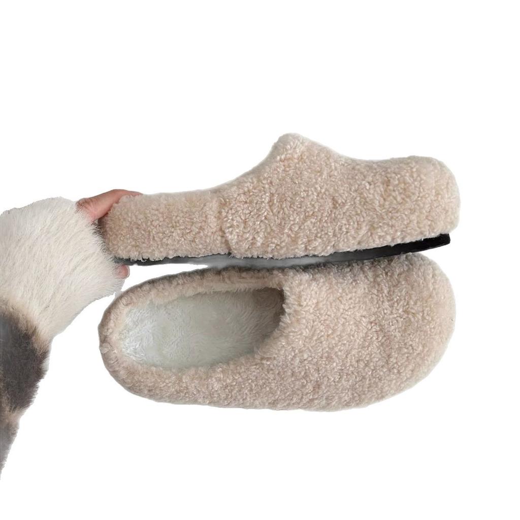 Женские полутапочки Baotou из ворсистой шерсти, осень-зима 2025, новые, на одной педали, из овечьей шерсти и хлопка, с плоской подошвой.
