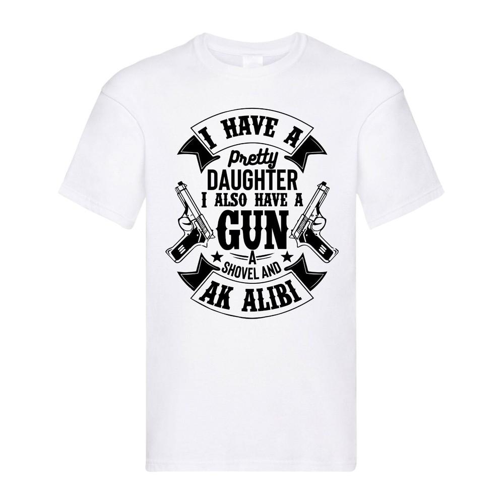 I Have a Pretty Daughter – Protective Dad Funny Quote T-shirt Men's Women's Tops Tees | Black Adult Tee