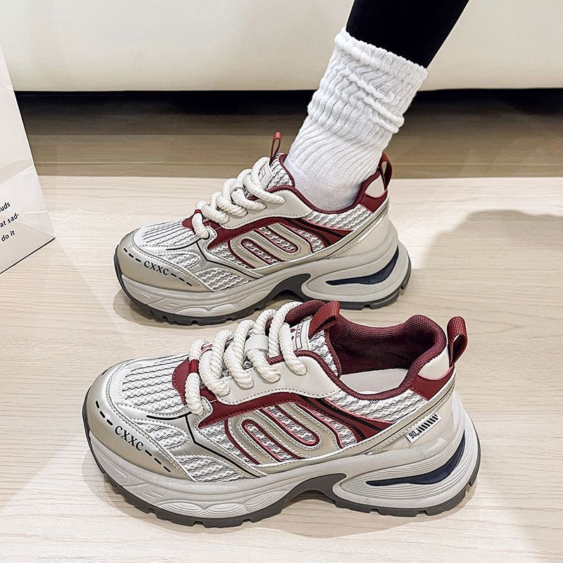 Студенческие повседневные спортивные туфли на платформе женские 2025 весна новая студенческая универсальная дышащая популярная обувь папы обувь на платформе