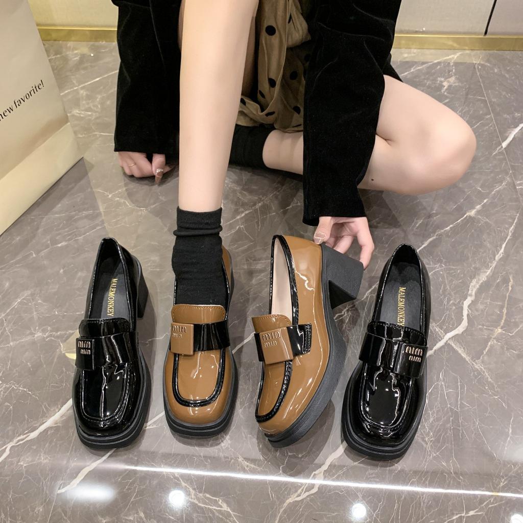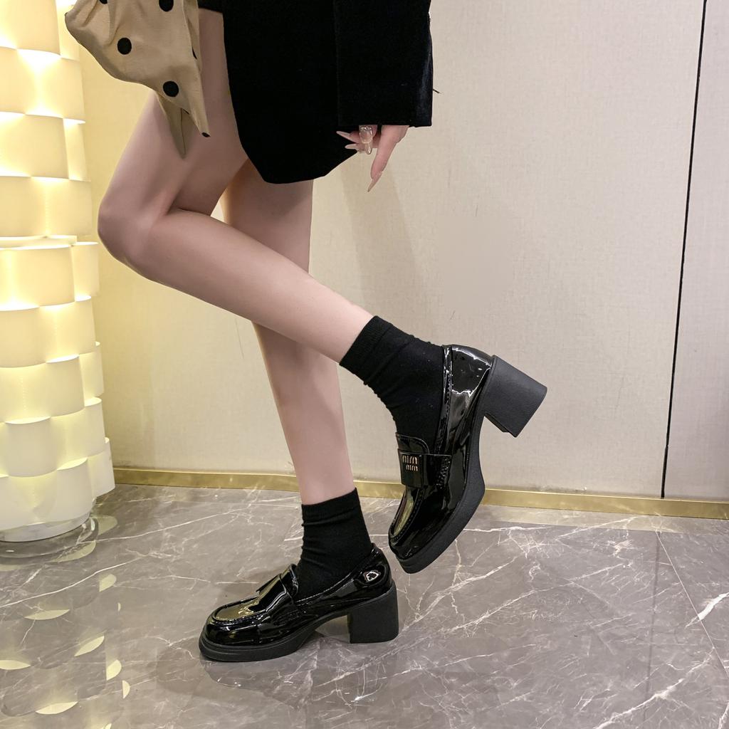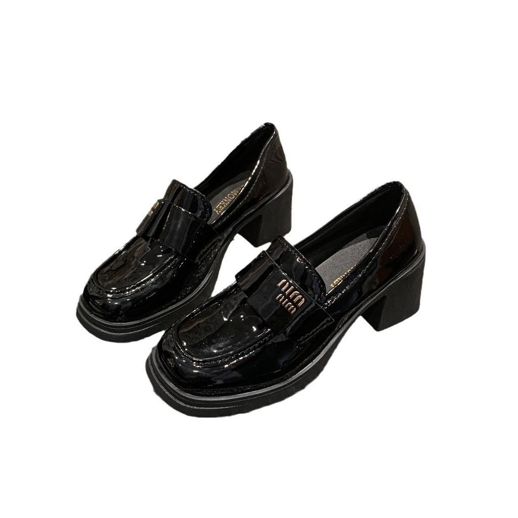 Универсальная женская обувь туфли на высоком каблуке лоферы маленькие кожаные туфли 2025 новая модель толстый каблук осень британский стиль универсальные туфли одинарки высокой ценности