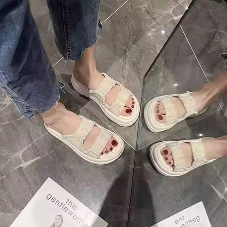 Универсальные сандалии на платформе женские летние 2025 новая мода сказочный стиль римские мягкая подошва пляжные крутые тапочки увеличивают рост