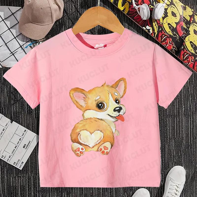 Летний детский топ с принтом корги, детская футболка с коротким рукавом, футболки на день рождения для девочек, детская одежда, повседневная футболка с круглым вырезом для ребенка