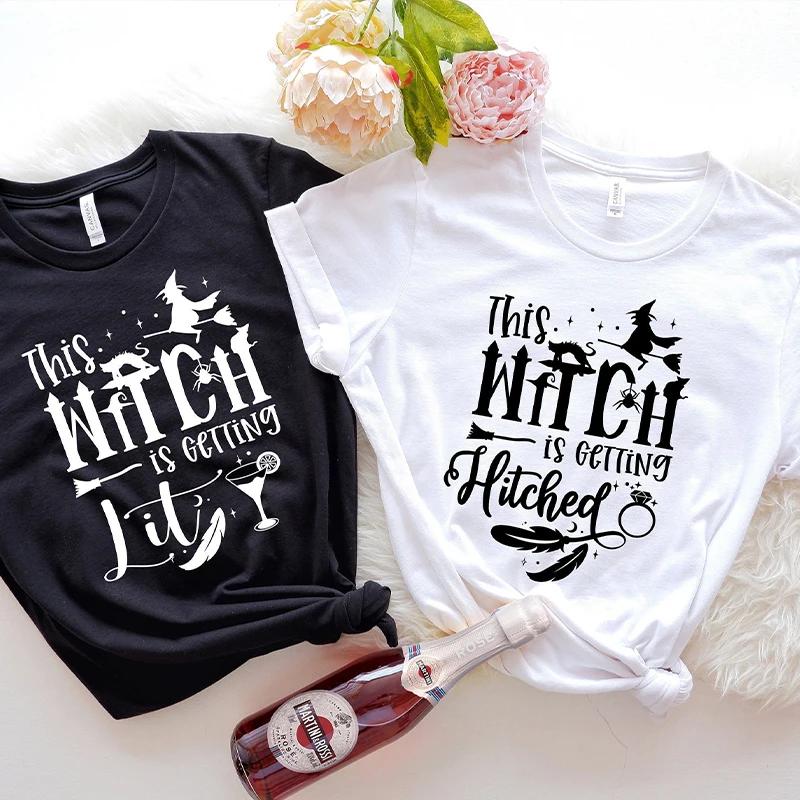 Команда Невесты Топы в стиле Y2k Рубашка для Девичника Свадебная Рубашка Эта Ведьма Выходит Замуж Зажигательная Футболка Хэллоуин Девичник Футболки