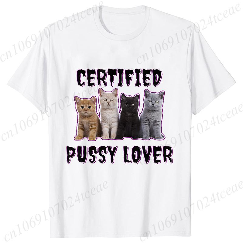 Смешная сертифицированная футболка с графикой кота-мема «Любитель кисок», унисекс, модная, кавайная, уличная, повседневная, винтажная футболка для мужчин и женщин