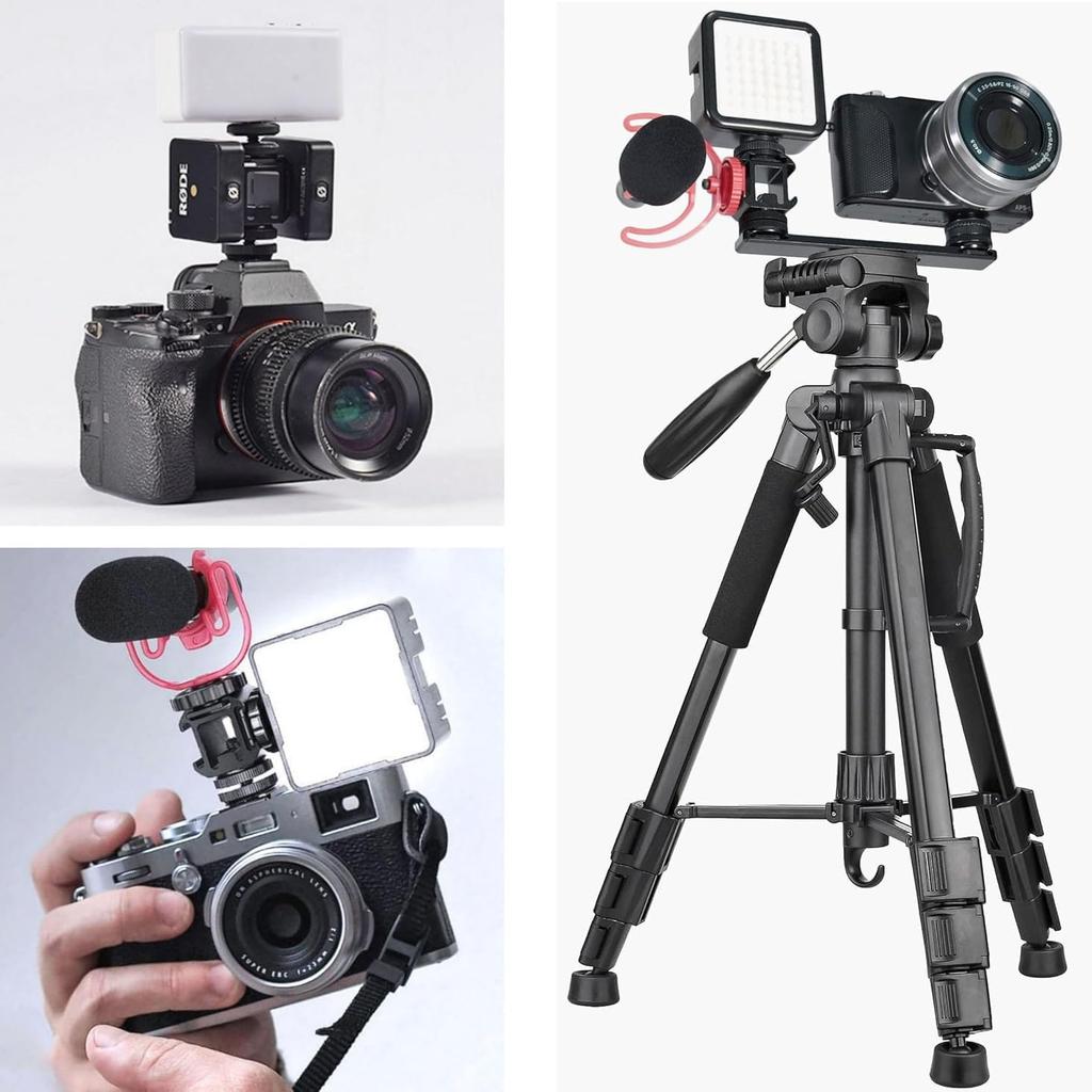 Набор адаптеров-кронштейнов для крепления обуви из алюминиевого сплава: Этот набор включает адаптер с тремя креплениями «холодный башмак» и винтовой разъем «горячий башмак» 1/4"-20 дюймов, позволяющие устанавливать различные аксессуары для видеозаписи.. Его компактный размер с ладонь позволяет легко носить и хранить.