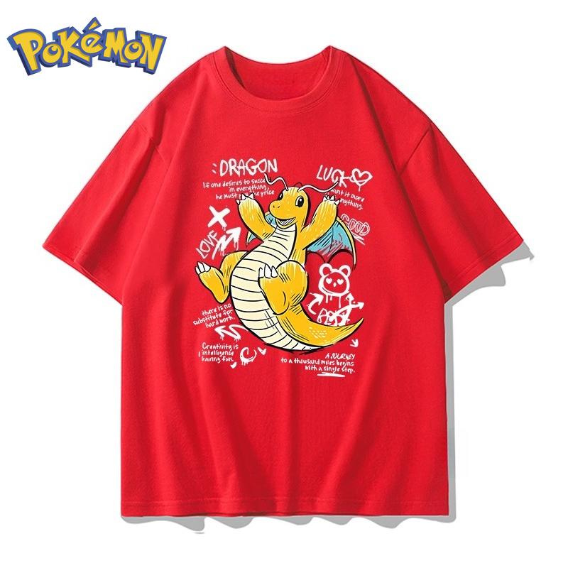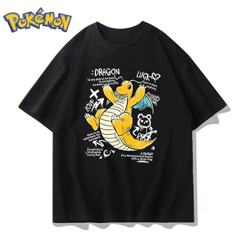 Pokémon Аниме Драгонайт Креативная футболка с коротким рукавом для мужчин и женщин Летняя Новинка Харадзюку Свободный Повседневный Универсальный Топ