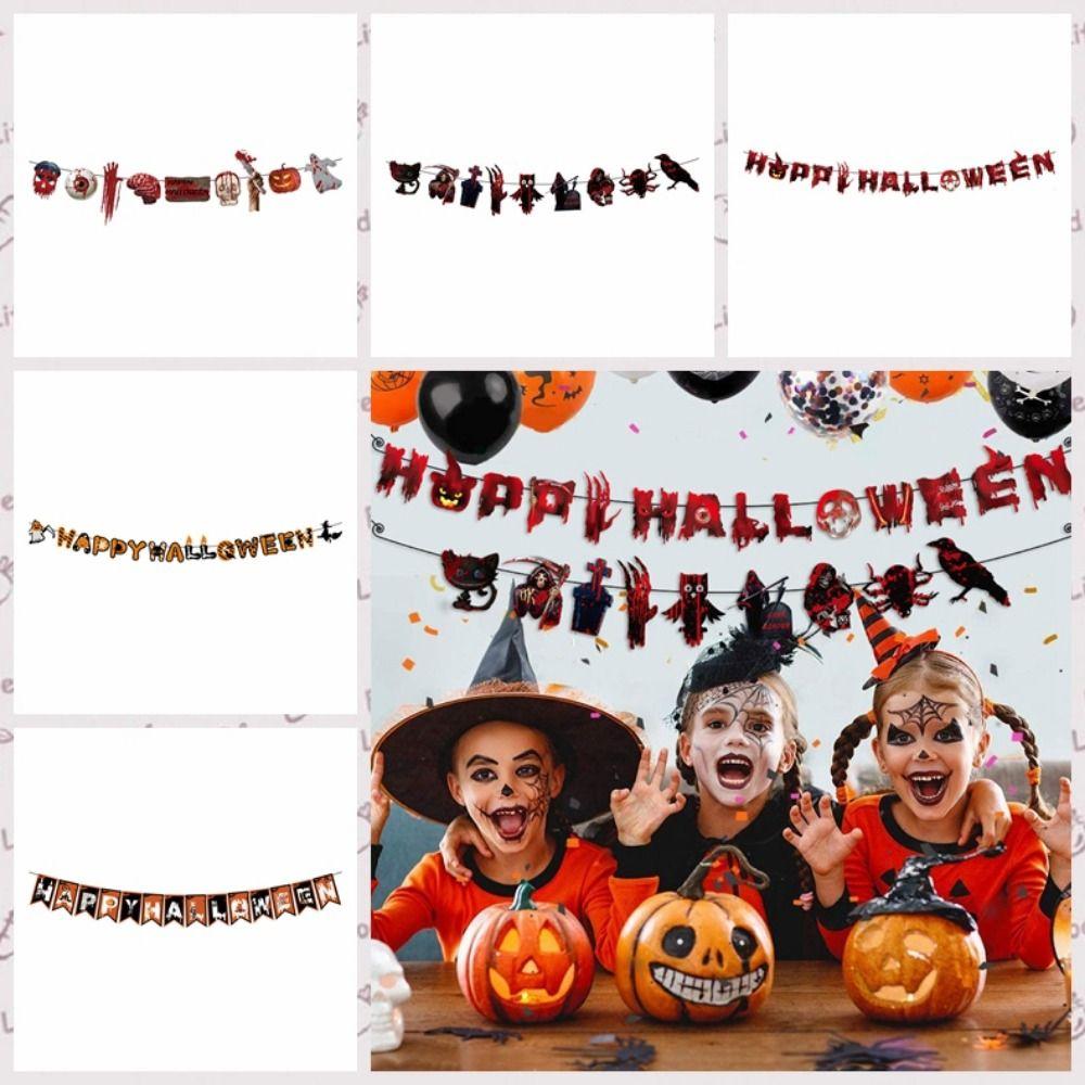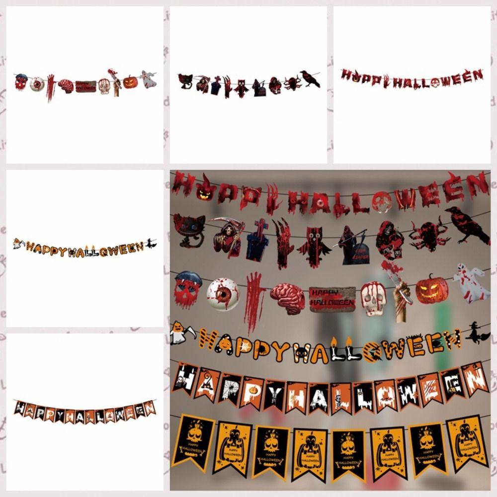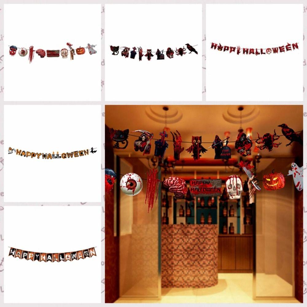 Hanging Halloween Skull Pulling Flag Papper Scary Banners Halloween Hanging Flag Ghost Festival