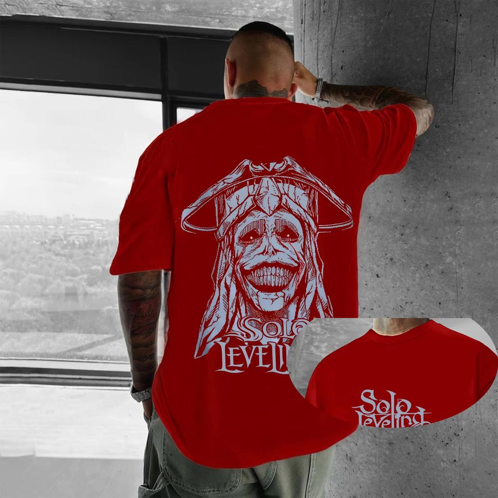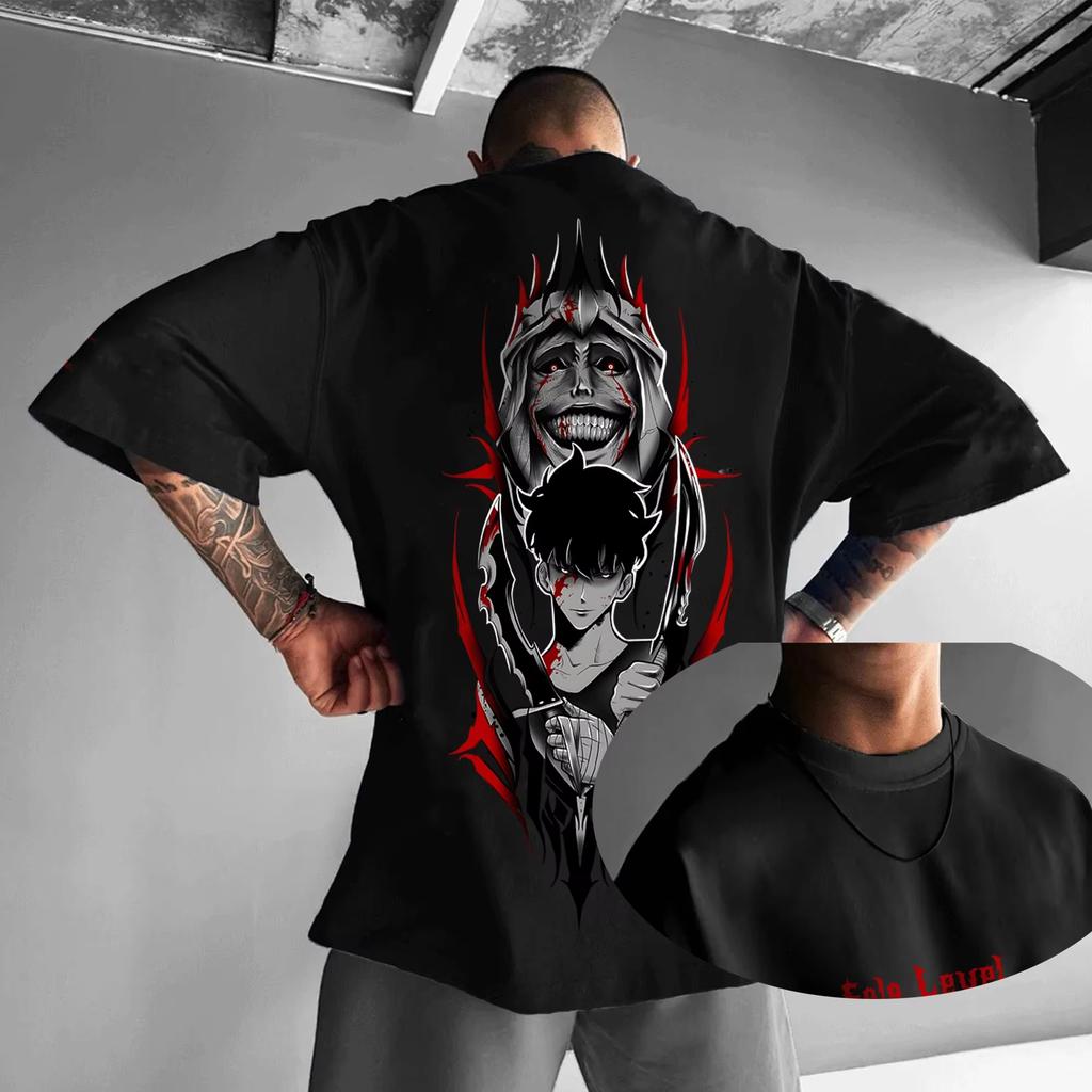 Новое японское аниме соло апгрейд крутая мультяшная футболка с рисунком круглый вырез отпуск с коротким рукавом свободная уличная футболка мужской топ