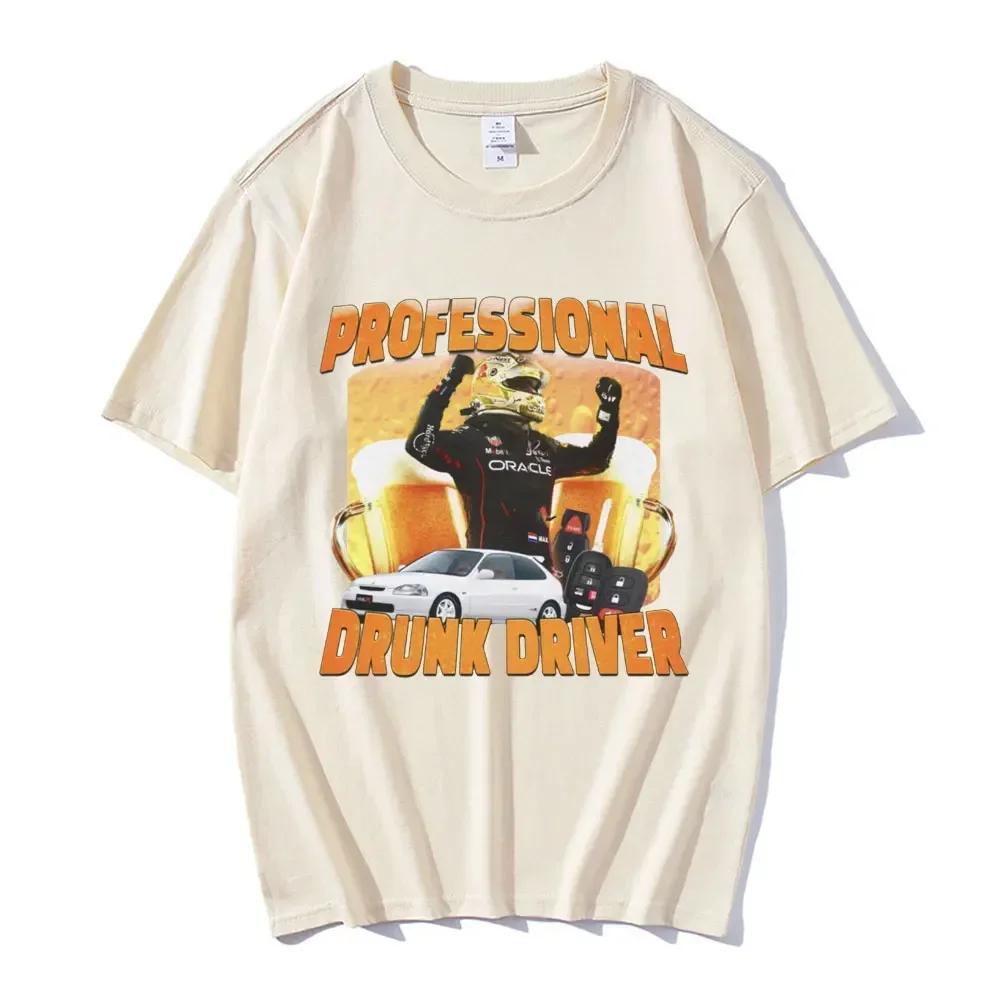 Профессиональный пьяный водитель Смешная футболка Женская мода Винтажные футболки с коротким рукавом Повседневные футболки Футболка Мужская Футболка с аниме