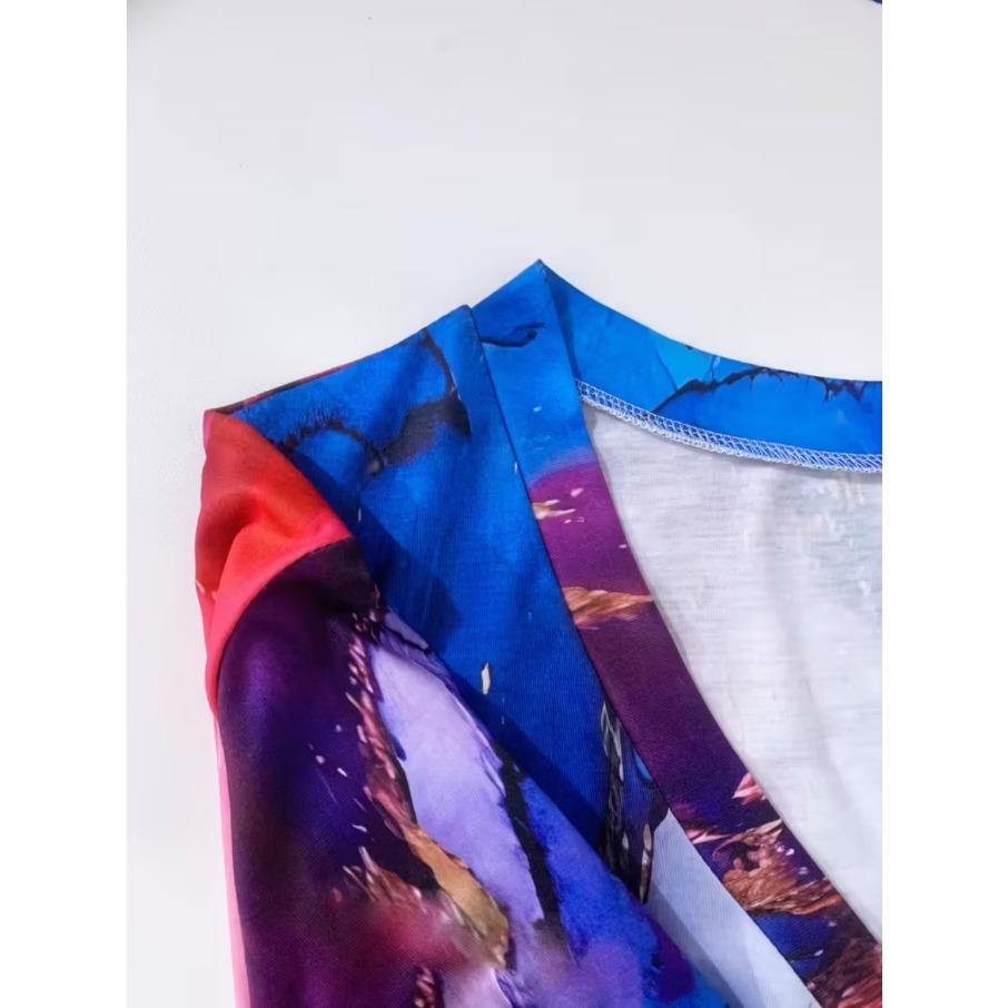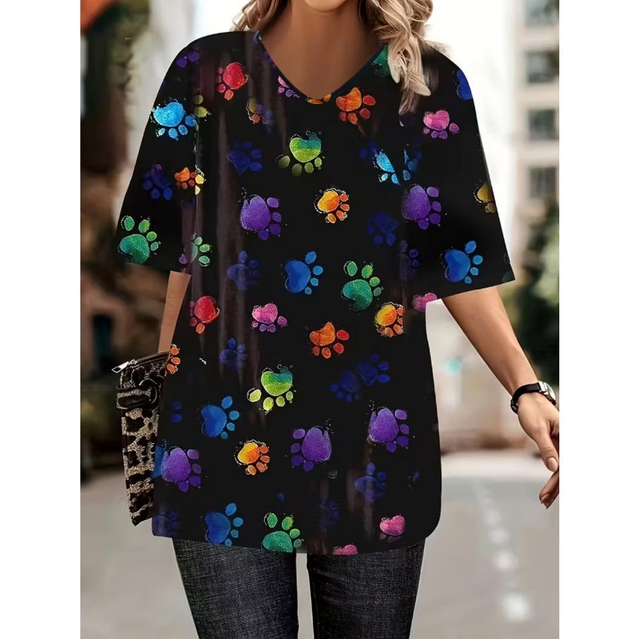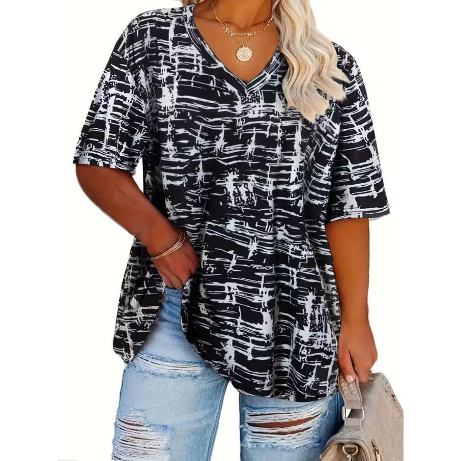 Женская футболка больших размеров XL-7XL с градиентным повседневным 3D-принтом, свободного кроя, с V-образным вырезом и короткими рукавами