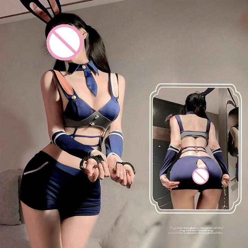 Комплект для ролевых игр «Полуночный кролик-полицейский-стюардесса» с открытой ластовицей и быстросъемным бельем. Невинный и сексуальный костюм стюардессы.