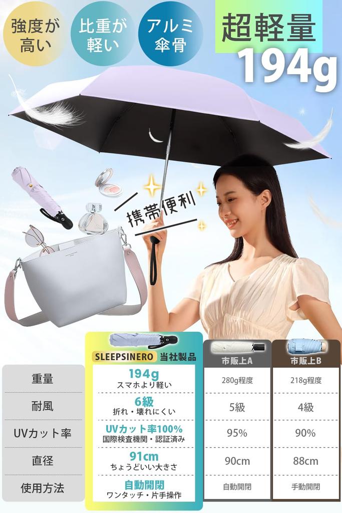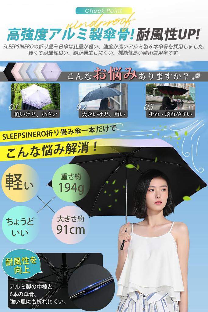 ☂️ [Сверхлегкий, 194 г и ветроустойчивый, высокопрочные алюминиевые спицы] Сверхлегкий складной зонт SLEEPSINERO весом 194 г был разработан с целью создать более легкий и прочный зонт. Стальные зонты весом более 200 г имеют очень тонкие спицы, что делает их уязвимыми к ветру.. Однако, все, что весит более 250 г, слишком тяжело и неудобно для продолжительных мероприятий на открытом воздухе.. После тщательного рассмотрения, складной зонт SLEEPSINERO имеет шесть ребер, изготовленных из легкого высокопрочного алюминия.. ✅Кроме того, мы тщательно отобрали легкую, ветрозащитную ткань для зонта. Этот зонт был тщательно исследован и изготовлен для обеспечения легкого веса, светоблокировки и ветроустойчивости.