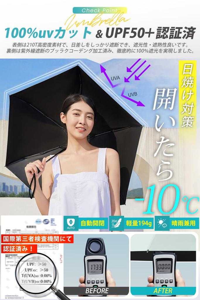 ☂️【100% защита от УФ-лучей и сертифицировано UPF 50+】 Этот складной зонт сертифицирован международным сторонним испытательным агентством на 100% защиту от УФ-лучей. Передняя часть зонта изготовлена из материала высокой плотности 210T, обеспечивающего отличную защиту от солнца и превосходные свето- и теплоотражающие свойства.. Тем временем задняя сторона покрыта черным УФ-блокирующим покрытием для полной 100% блокировки света. Этот складной зонт обеспечивает сильную защиту от УФ-лучей для предотвращения солнечных ожогов и обладает полной светонепроницаемостью.