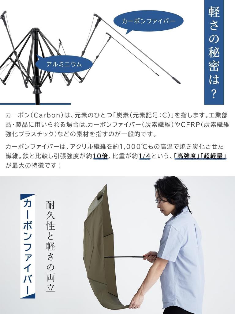 [Сверхлегкий, Легко складывающийся, Большой размер] Представляем новый, легкий, но большой и прочный зонт из серии "Selfold", который отличается исключительной легкостью складывания благодаря своей обработке для стабилизации формы.. Обработка для сохранения формы использует специальную технику термообработки для создания складок непосредственно в ткани зонта, что устраняет необходимость в листе, как в прошлом, и обеспечивает полупостоянный эффект.. Кроме того, ребра роскошно изготовлены из сверхлегкого углеродного волокна. Будучи чрезвычайно легким, углеродное волокно прочнее стандартных алюминиевых или стальных рам, сочетая превосходную прочность и гибкость.. Даже в большом размере с максимальным диаметром 114 см, зонт весит всего примерно 245 г.