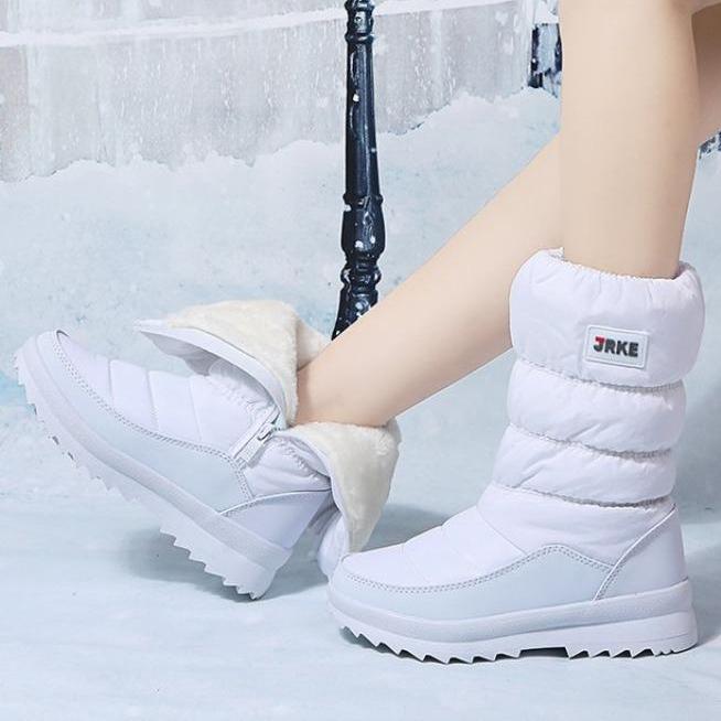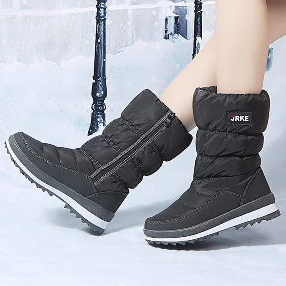 Зимние сапоги на толстой подошве. Хлопковые сапоги с боковой молнией. Теплая женская обувь.