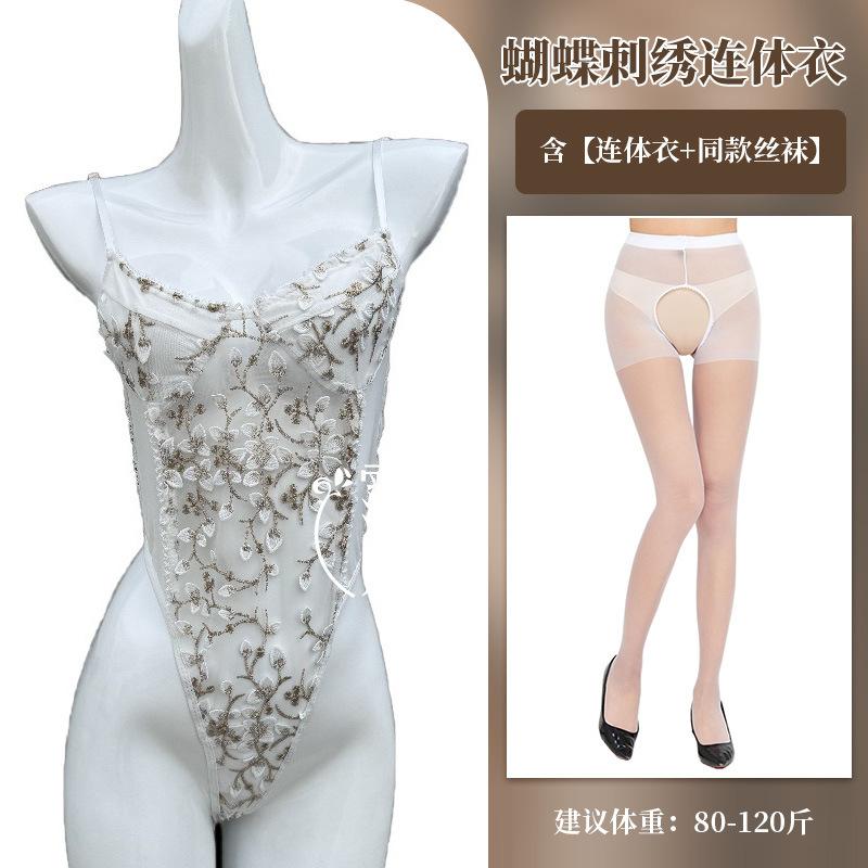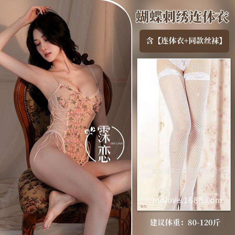 One-piece erotic underwear hot-selling lace embroidery hollow transparent sexy suspender mesh temptation