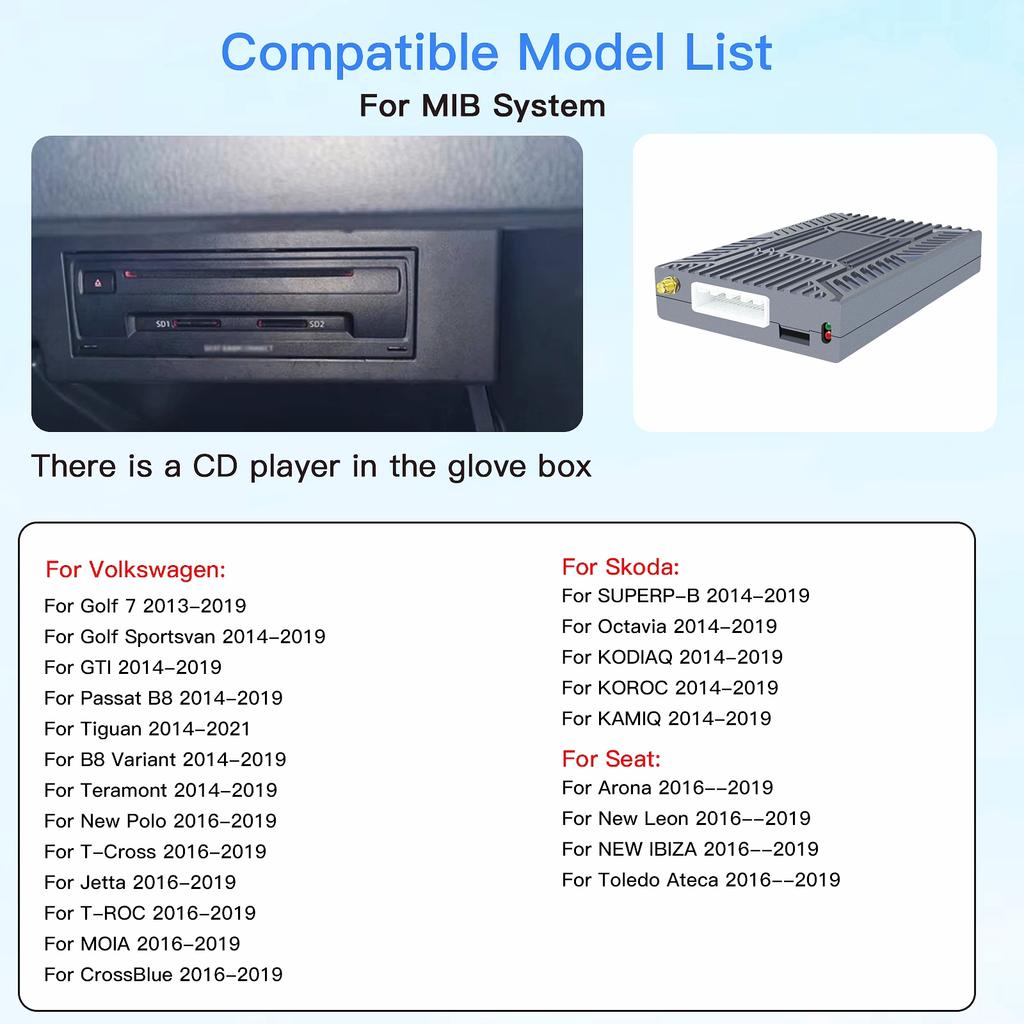 ANYFAR Беспроводной Carplay Android Auto для Volkswagen Golf 7 с системой MIBI Мультимедийный аксессуар Поддерживаемые камеры