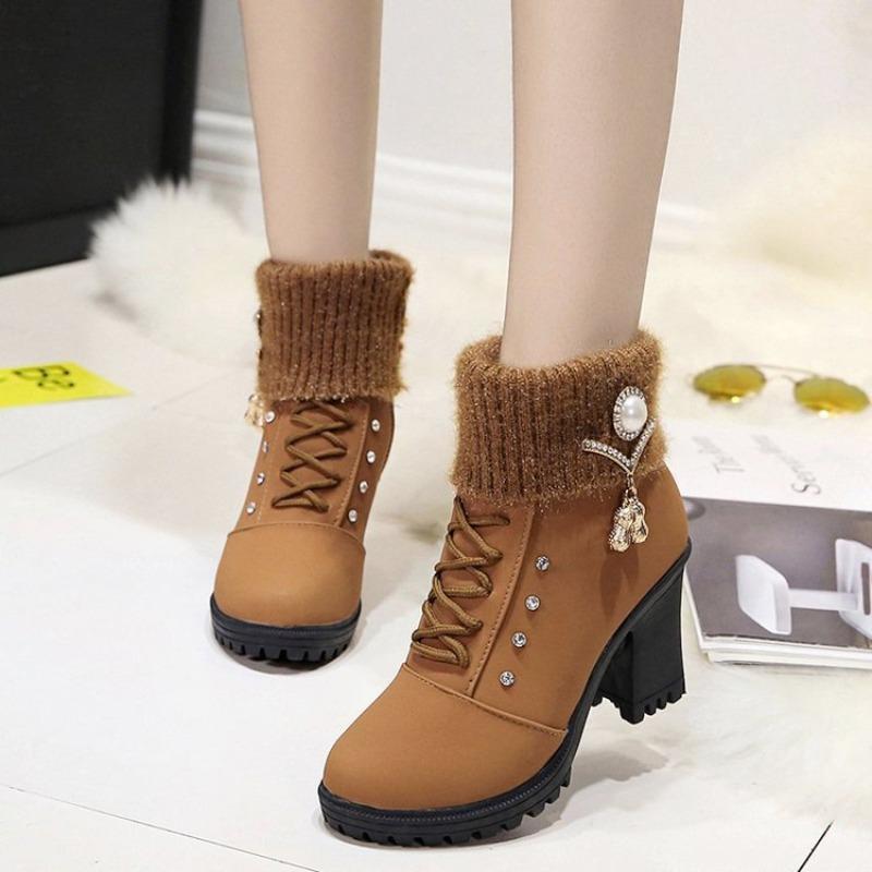 Женские ботинки Martin с отделкой из страз, высокий толстый каблук, короткая застежка-молния